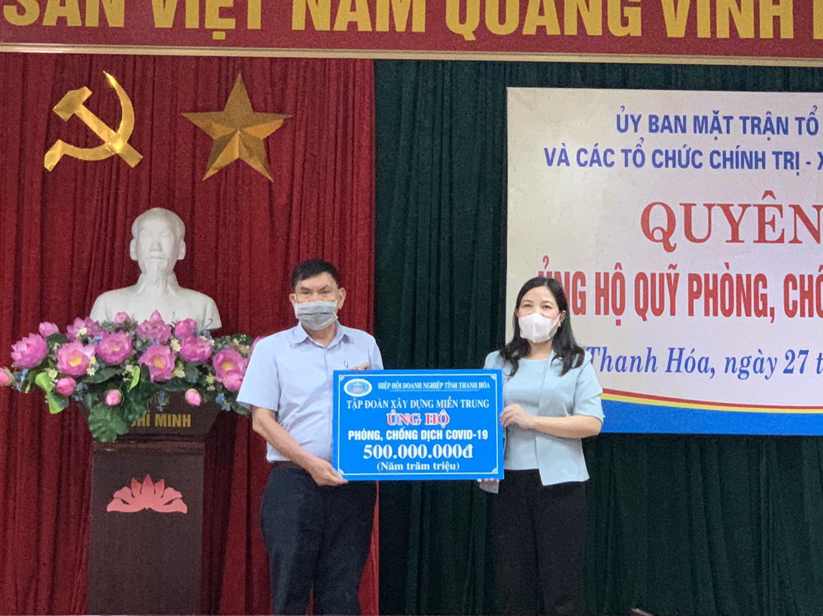 Tập đoàn Xây dựng Miền Trung ủng hộ 500 triệu đồng phòng chống dịch COVID 19. Ảnh: VT