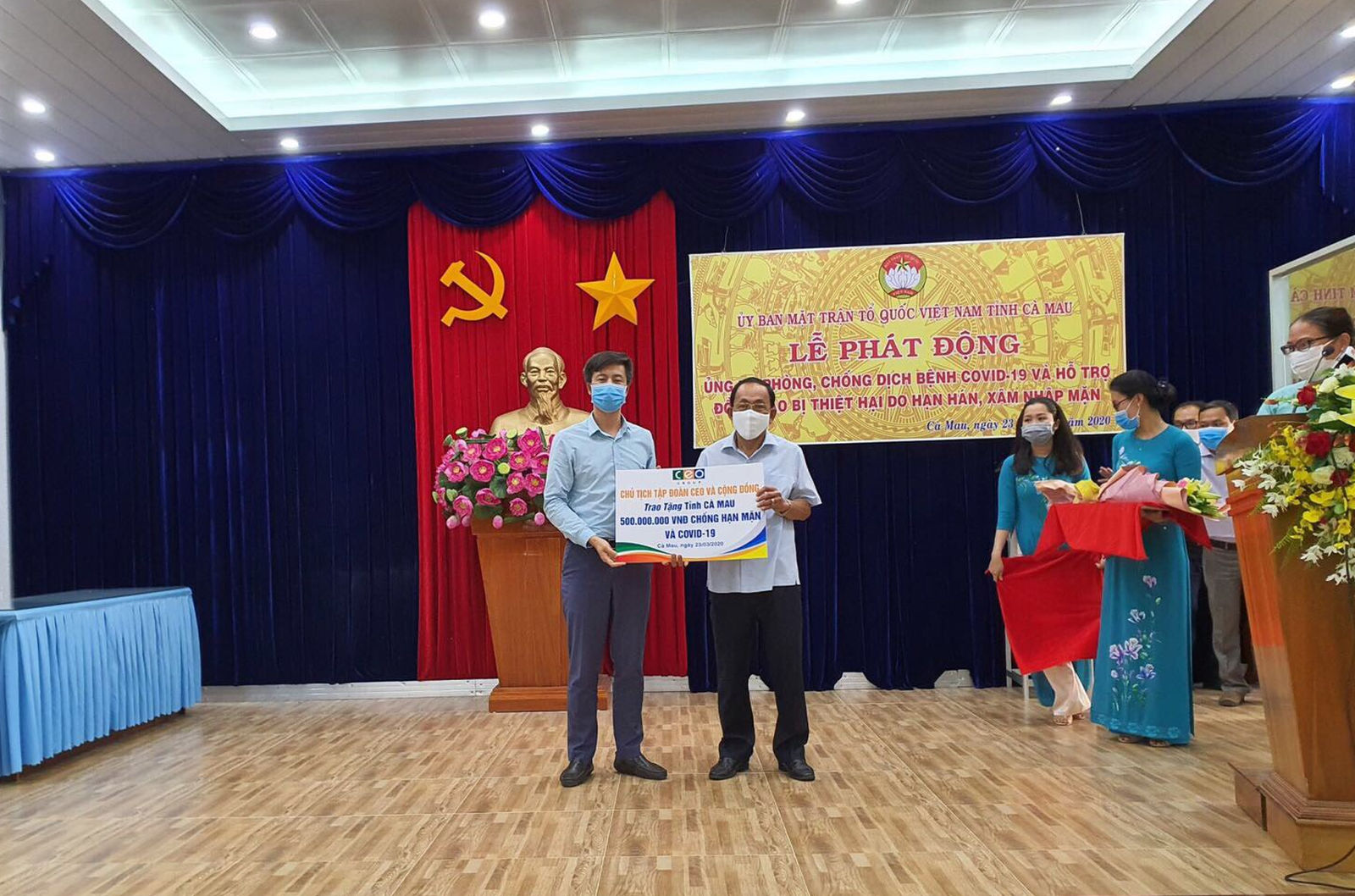 Đại diện Tập đoàn CEO trao tặng 2 tỷ đồng cho các tỉnh miền Tây để cùng bà con chống hạn mặn và đại dịch Covid-19
