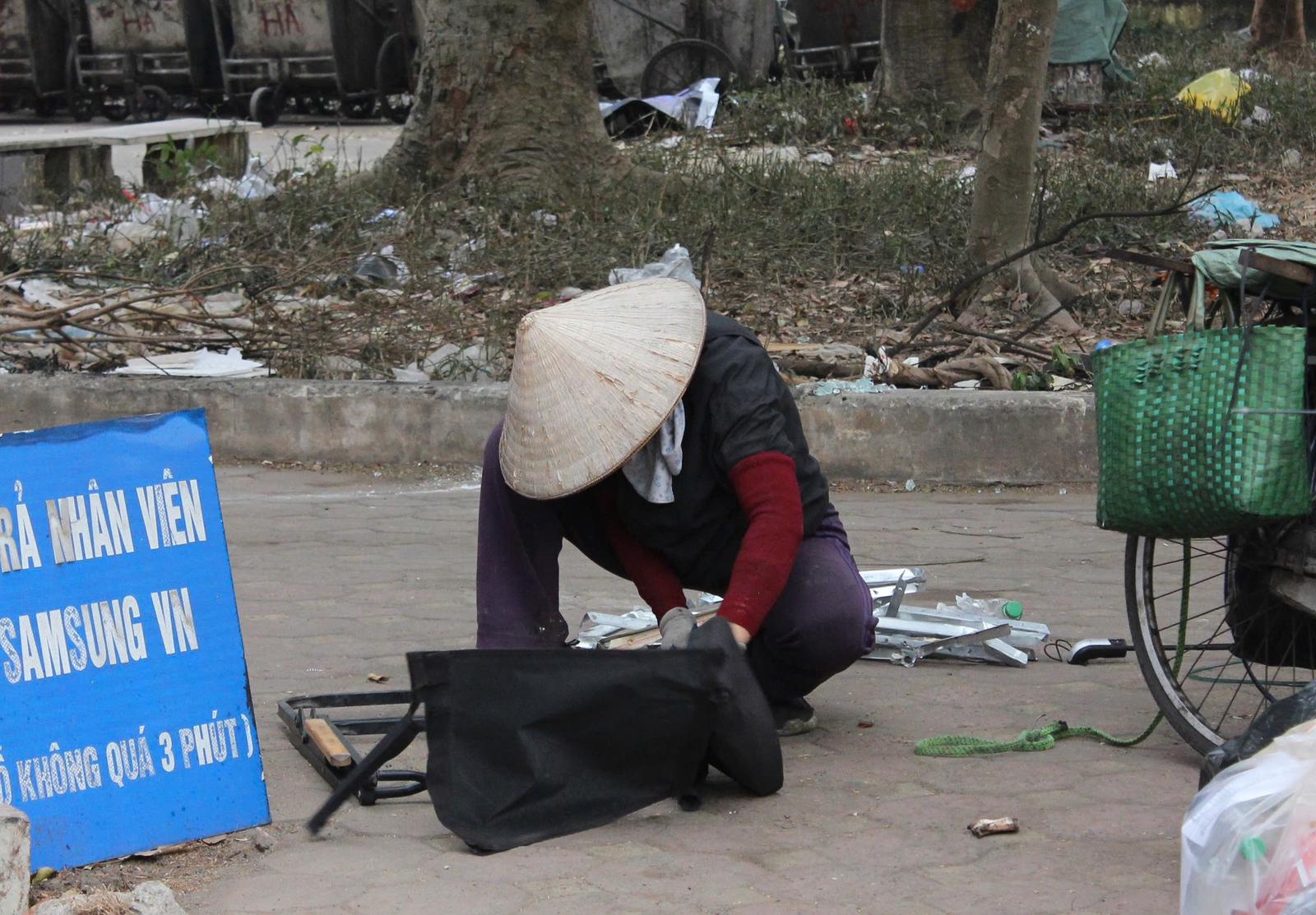 Cùng nỗi lo mưu sinh trong những ngày cận Tết, ở một góc phố nhỏ trên đường 19/5 (quận Hà Đông), bà Nguyễn Thị Lý (68 tuổi, quê Bắc Giang) đang cặm cụi thu gom phế liệu. Bà tâm sự, công việc dọn nhà thuê theo giờ là nguồn thu nhập chính của bà. Những ngày cận Tết, công việc bận rộn hơn, nhưng bà vẫn tranh thủ thời gian nghỉ ngơi để đi thu gom phế liệu kiếm thêm “đồng ra, đồng vào”.