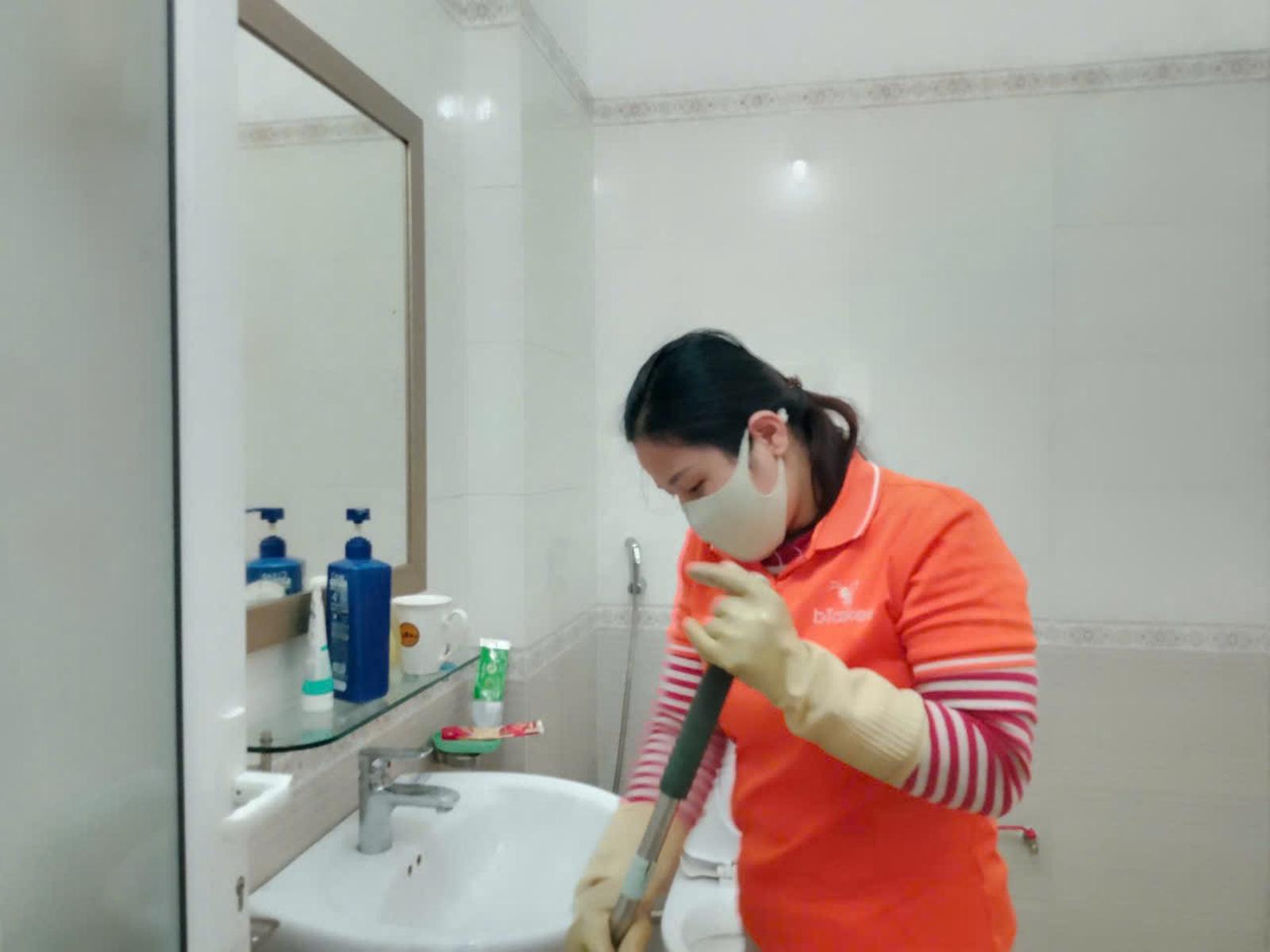 Chị N.T.L. tranh thủ ở lại Hà Nội những ngày cận Tết, dọn vệ sinh nhà cửa, kiếm thêm thu nhập để mua sắm Tết và biếu bố mẹ hai bên. Ảnh: Thanh Thu