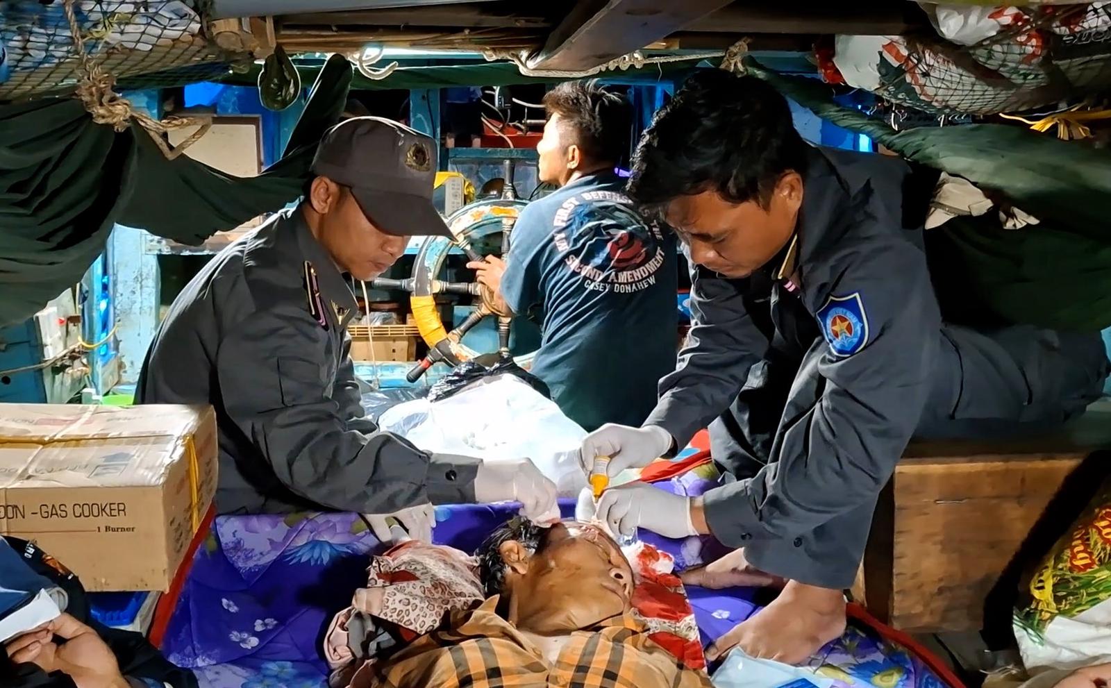 Ngư dân gặp nạn là Nguyễn Văn Hoàng (sinh năm 1985, quê Tiệm Tôm, huyện Ba Tri, tỉnh Bến Tre – nay thuộc tỉnh Vĩnh Long). Khi được tiếp cận, anh Hoàng trong tình trạng choáng, có vết thương hở sâu khoảng 1,5cm, dài 4 - 5cm ở vùng thái dương phải, chảy nhiều máu do va đập trong quá trình lao động.