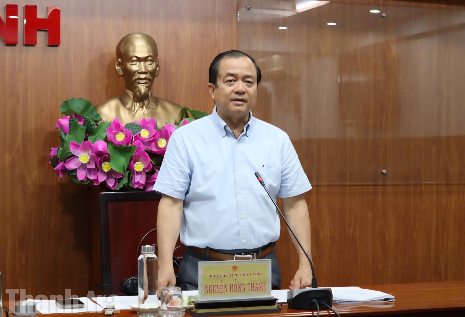 Ủy viên Ban Thường vụ Tỉnh ủy, Phó Chủ tịch UBND tỉnh Tây Ninh Nguyễn Hồng Thanh phát biểu tại cuộc họp. Ảnh: Thu Huyền