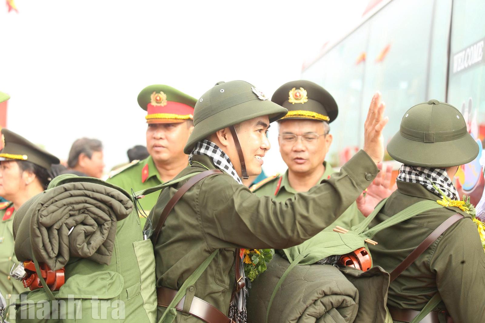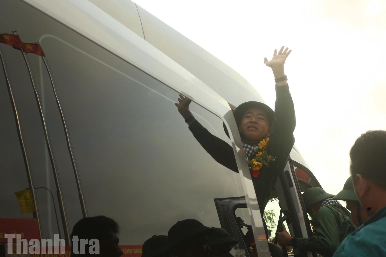 Tân binh chào tạm biệt để lên đường nhập ngũ