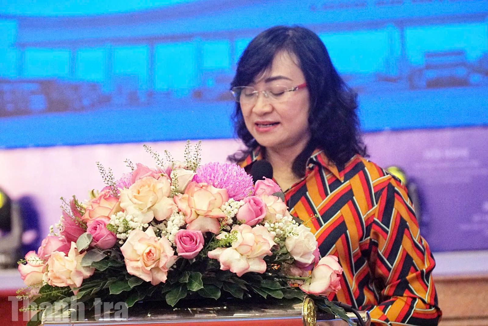 Thứ trưởng Bộ Công Thương Phan Thị Thắng phát biểu tại hội nghị. Ảnh: Thu Huyền