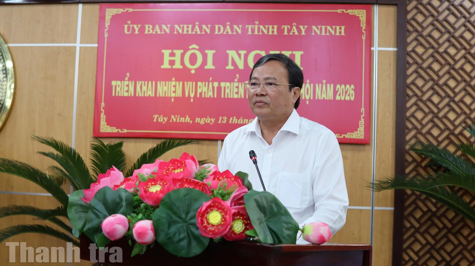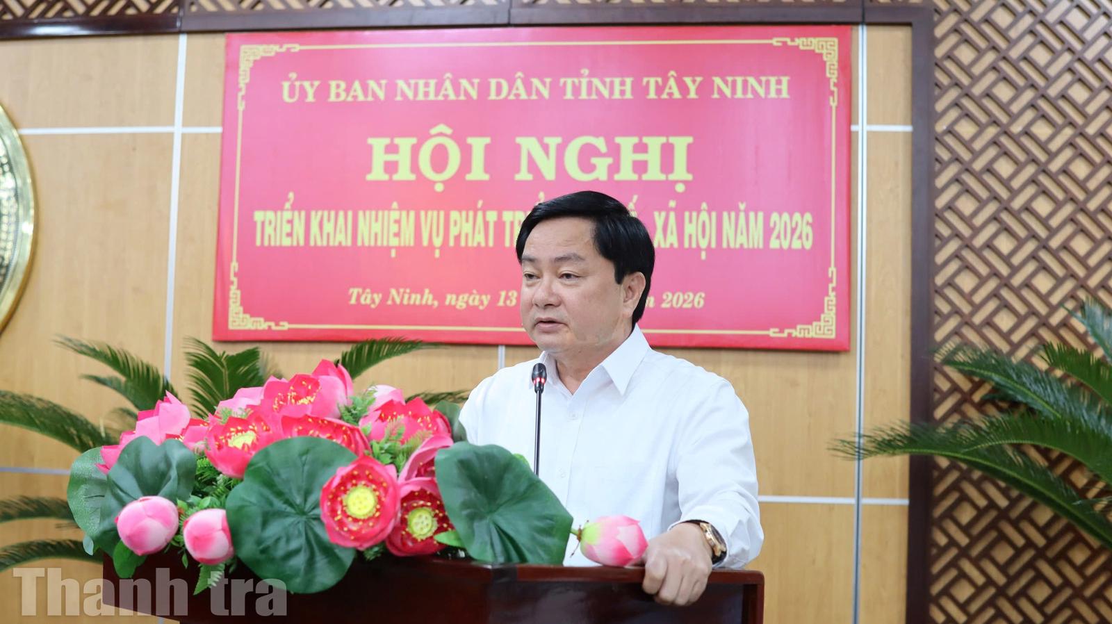 (Thanh tra) - Ngày 13/1, UBND tỉnh Tây Ninh đã tổ chức Hội nghị triển khai nhiệm vụ kinh tế - xã hội năm 2026. Dự hội nghị có Bí thư Tỉnh ủy Nguyễn Văn Quyết; Chủ tịch UBND tỉnh Lê Văn Hẳn cùng lãnh đạo HĐND, Ủy ban MTTQ Việt Nam tỉnh, đại diện các sở, ban, ngành và địa phương trong tỉnh.