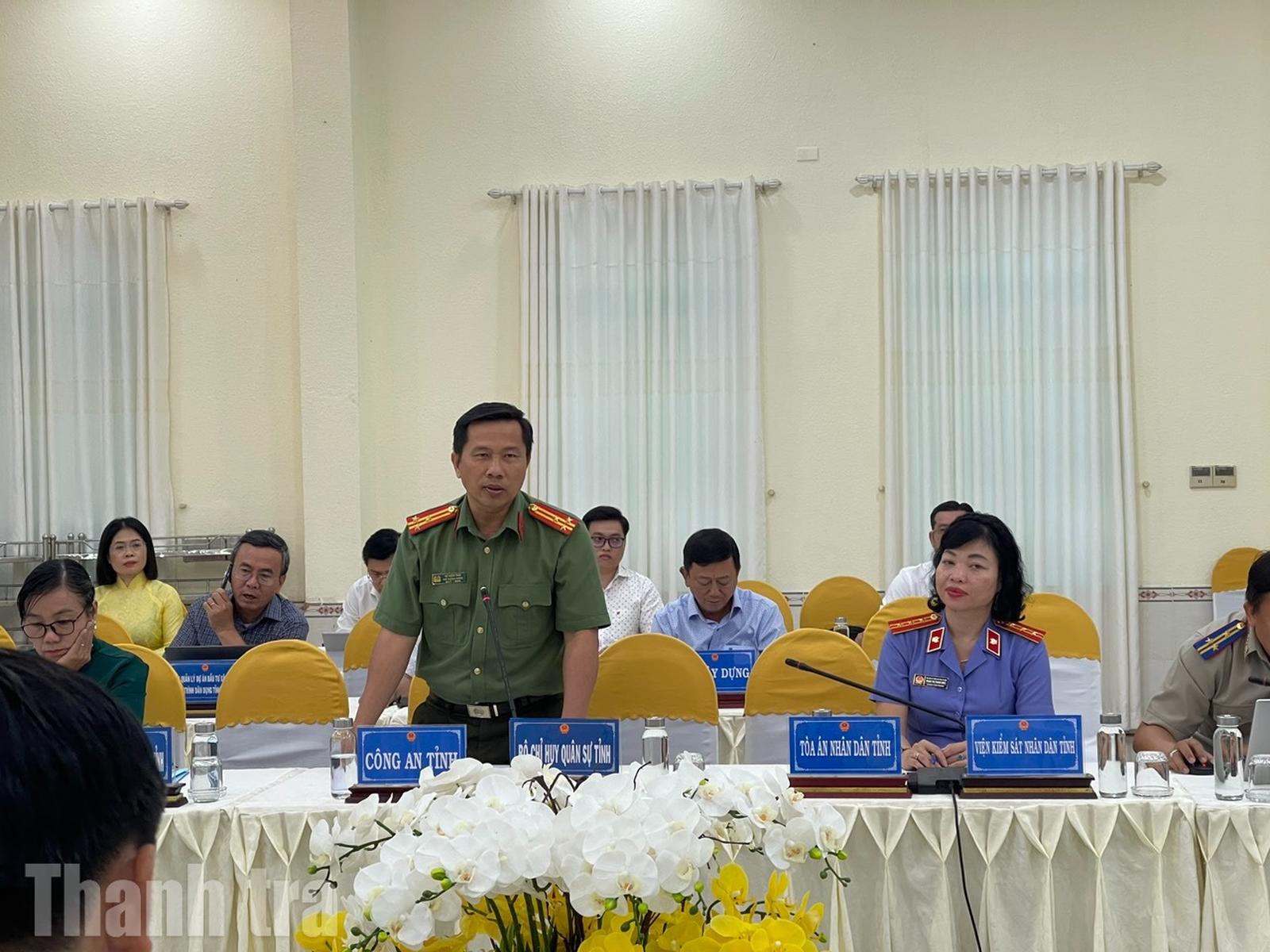 Đại diện Công an tỉnh phát biểu tại buổi họp báo. Ảnh: Thu Huyền