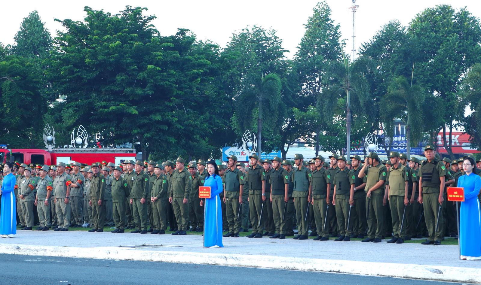 UBND tỉnh Tây Ninh ra mắt lực lượng tham gia bảo vệ an ninh, trật tự ở cơ sở. Ảnh: Vũ Khoa