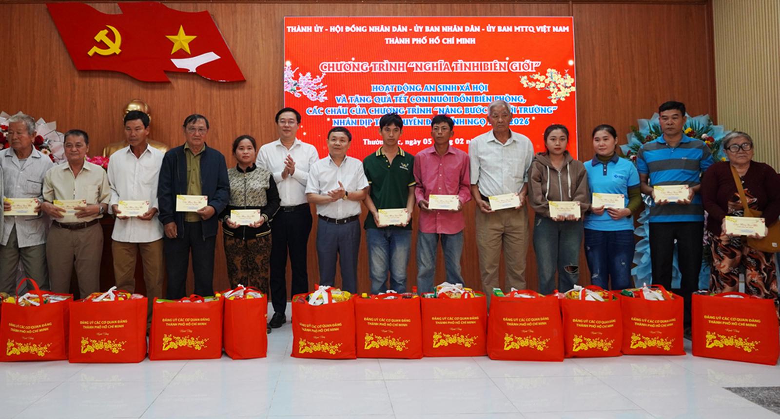 Cũng trong chuỗi hoạt động an sinh xã hội dịp Tết, ngày 5/2/2026, Ủy ban Mặt trận Tổ quốc Việt Nam tỉnh Đồng Tháp phối hợp với Đảng ủy các cơ quan Đảng Thành phố Hồ Chí Minh tổ chức Chương trình “Kết nối biên cương”. Chương trình đã trao kinh phí hỗ trợ 1,5 tỷ đồng, tặng hàng trăm phần quà Tết, xe đạp cho học sinh vượt khó, hỗ trợ lắp đặt công trình dân sinh và chăm lo cán bộ, chiến sĩ, Nhân dân khu vực biên giới.