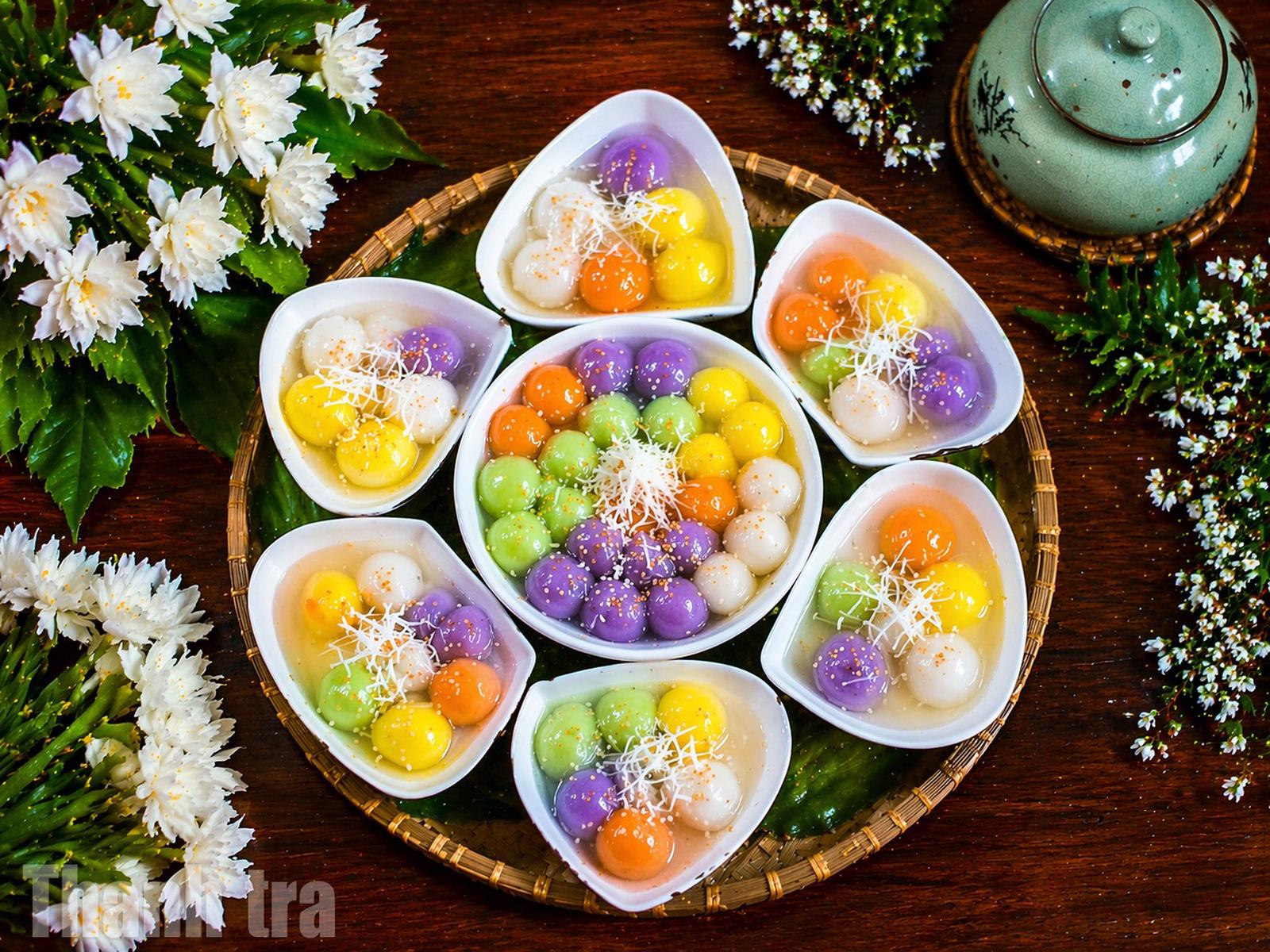 Mâm bánh trôi, bánh chay nhiều màu sắc được trình bày hài hòa, bắt mắt, thể hiện sự sáng tạo trong cách gìn giữ và làm mới nét ẩm thực truyền thống của người Việt. Ảnh: Lan Anh