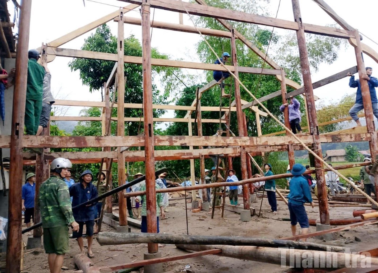 Người dân xã Nghĩa Đô chung tay làm nhà mới. Ảnh: Bình Yên