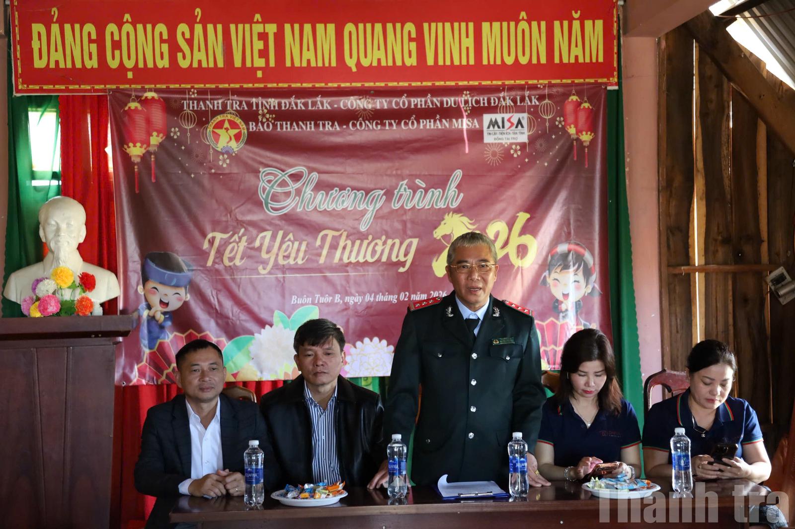 Phát biểu tại chương trình, ông Nguyễn Hồng Lĩnh, Phó Chánh Thanh tra tỉnh Đắk Lắk nhấn mạnh, những phần quà được trao hôm nay là tình cảm, tấm lòng của Thanh tra tỉnh Đắk Lắk, Báo Thanh tra và các đơn vị tài trợ dành cho bà con buôn Tuôr B nhân dịp Tết cổ truyền của dân tộc. Đây không chỉ là sự hỗ trợ trước mắt, mà còn thể hiện sự quan tâm, gắn bó và đồng hành lâu dài của các đơn vị kết nghĩa với nhân dân trong buôn.