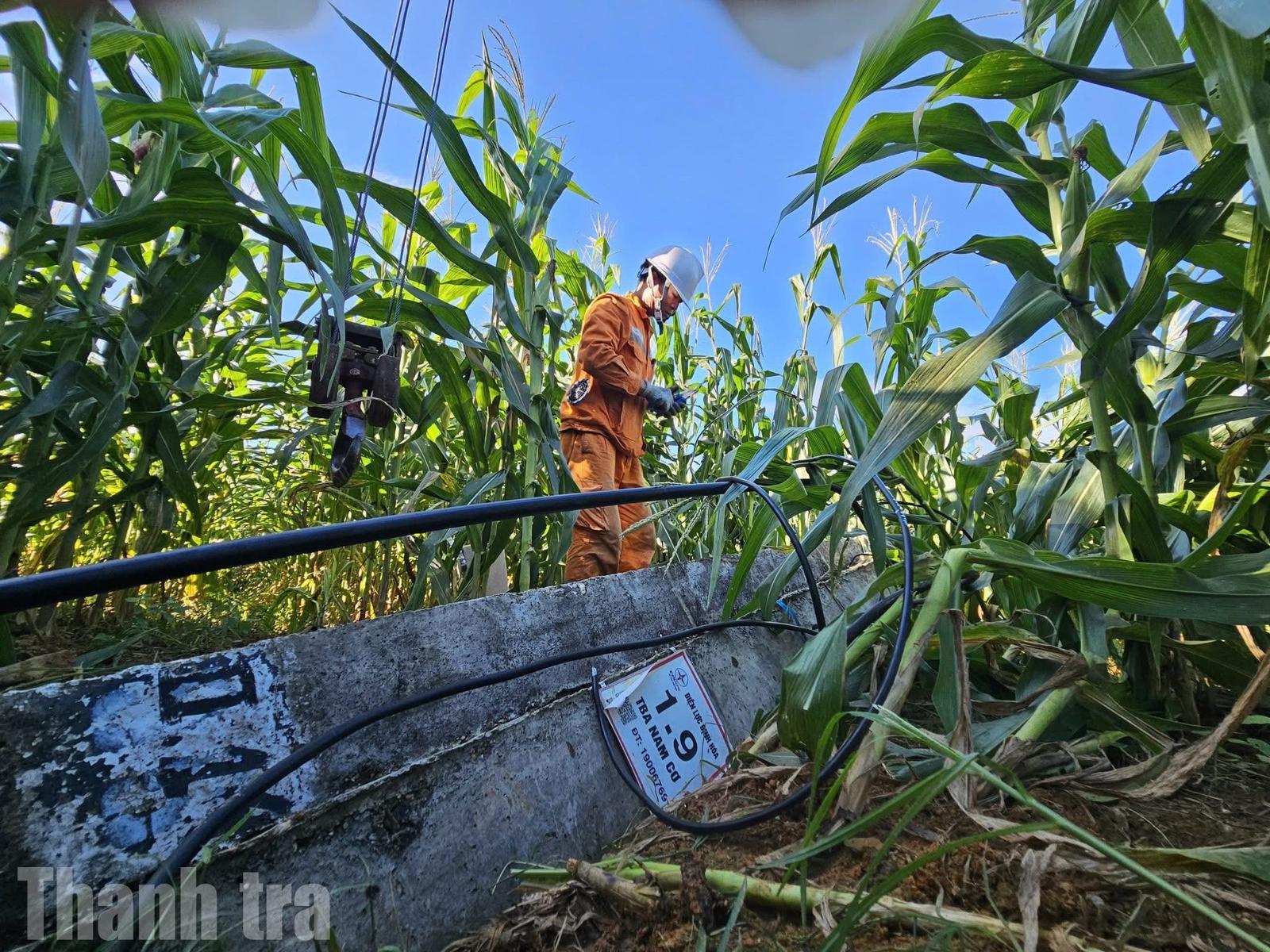 Ngành điện lực Thái Nguyên khẩn trương khắc phục sự cố, khôi phục cấp điện cho người dân. Ảnh: HL