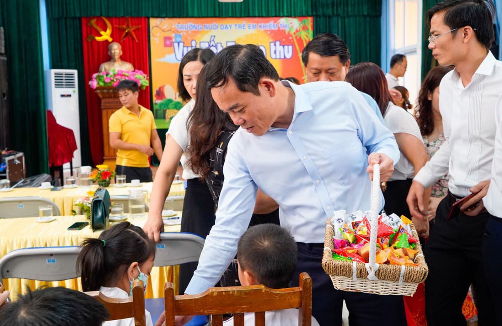Bí thư Thành ủy Trần Lưu Quang phát quà cho các cháu. Ảnh: KT
