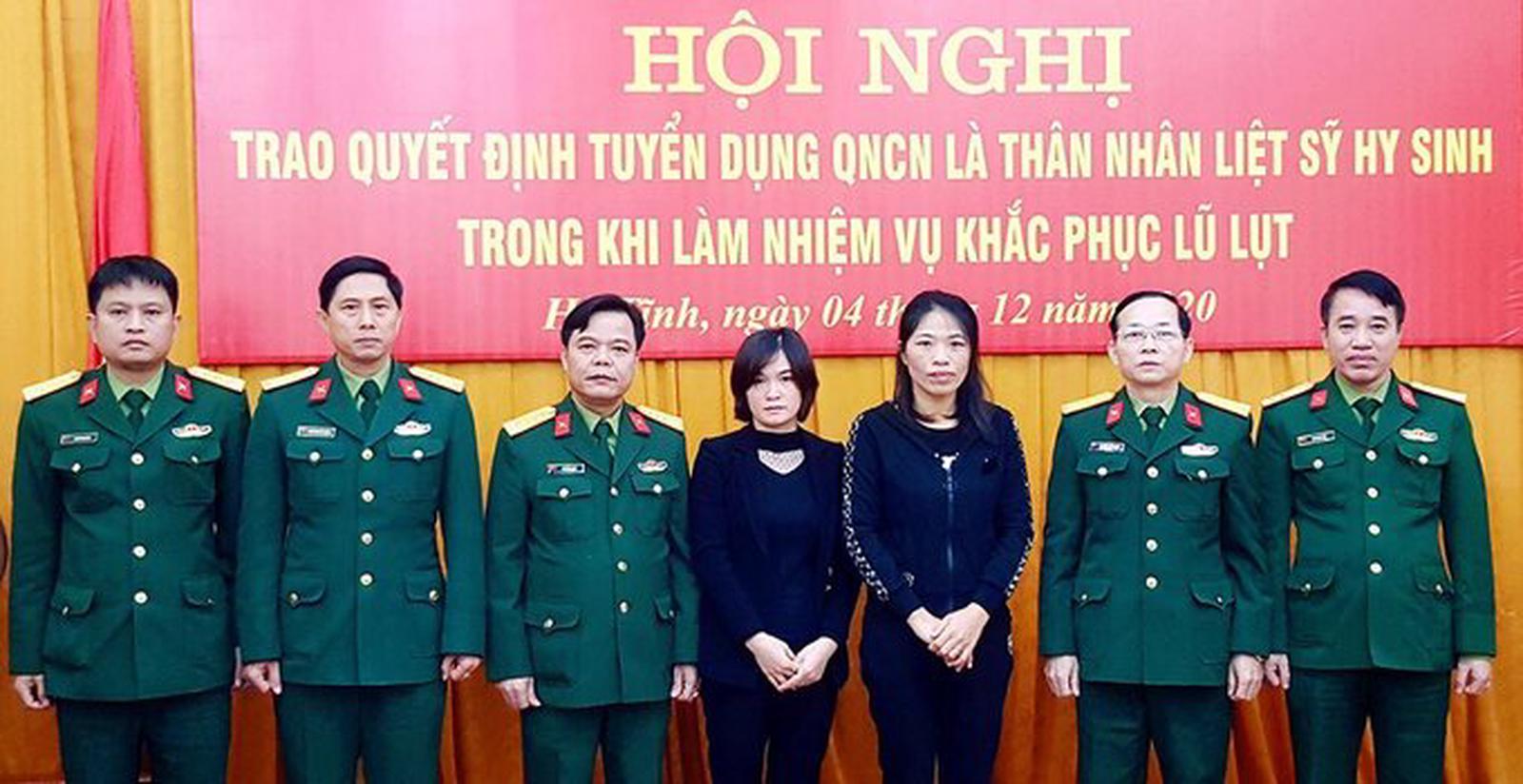 Tại Hà Tĩnh, Thừa ủy quyền của Bộ Tư lệnh Quân khu 4, Bộ Chỉ huy quân sự tỉnh Hà Tĩnh đã trao quyết định tuyển dụng quân nhân chuyên nghiệp cho hai thân nhân liệt sĩ Đoàn Kinh tế quốc phòng 337 là chị Nguyễn Thị Hoa, 41 tuổi, vợ liệt sĩ Nguyễn Cao Cường (quê huyện Nghi Xuân); chị Thiều Thị Phương Nhung, 34 tuổi, vợ liệt sĩ Trần Quốc Dũng (quê huyện Thạch Hà).
