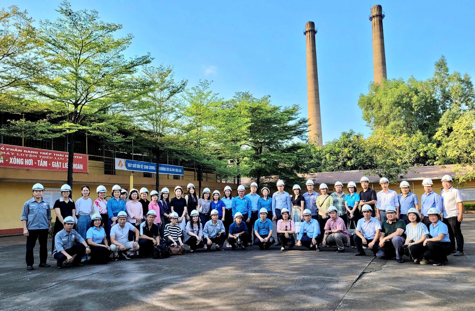 Lãnh đạo Tổng Liên đoàn Lao động Việt Nam thăm và làm việc với lãnh đạo và công nhân Công ty Cổ phần Gang thép Thái Nguyên. Ảnh: NĐ