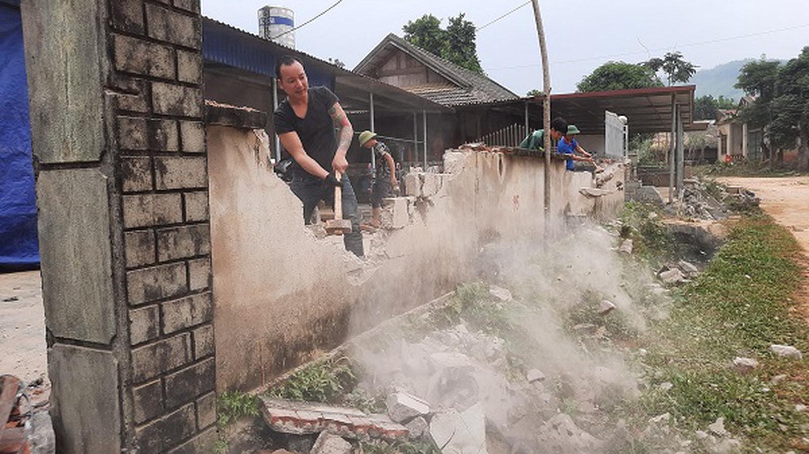 Nhân dân thôn Làng Sảo, xã Minh Tiến tự nguyện phá bỏ tường rào, hiến đất làm đường giao thông nông thôn. Ảnh: Bùi Bình