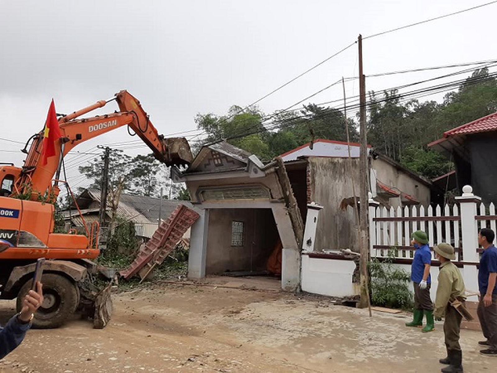 Nhân dân xã Phan Thanh tự nguyện phá dỡ nhà để hiến đất làm đường. Ảnh: Bùi Bình
