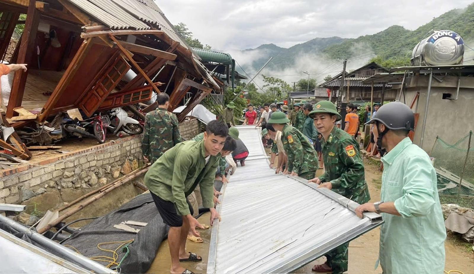 Cùng ngày, chính quyền địa phương và lực lượng Bộ đội Biên phòng đã chung tay giúp đỡ các gia đình bị thiệt hại khắc phục hậu quả, vượt qua khó khăn, đảm bảo cuộc sống trước mắt.