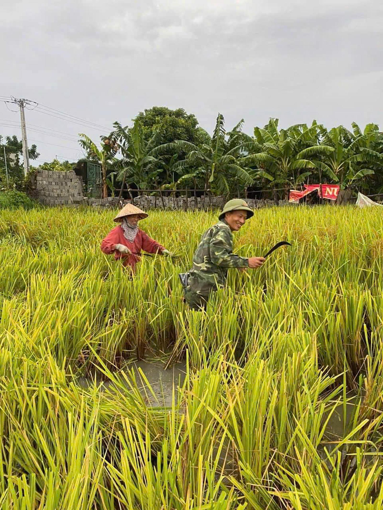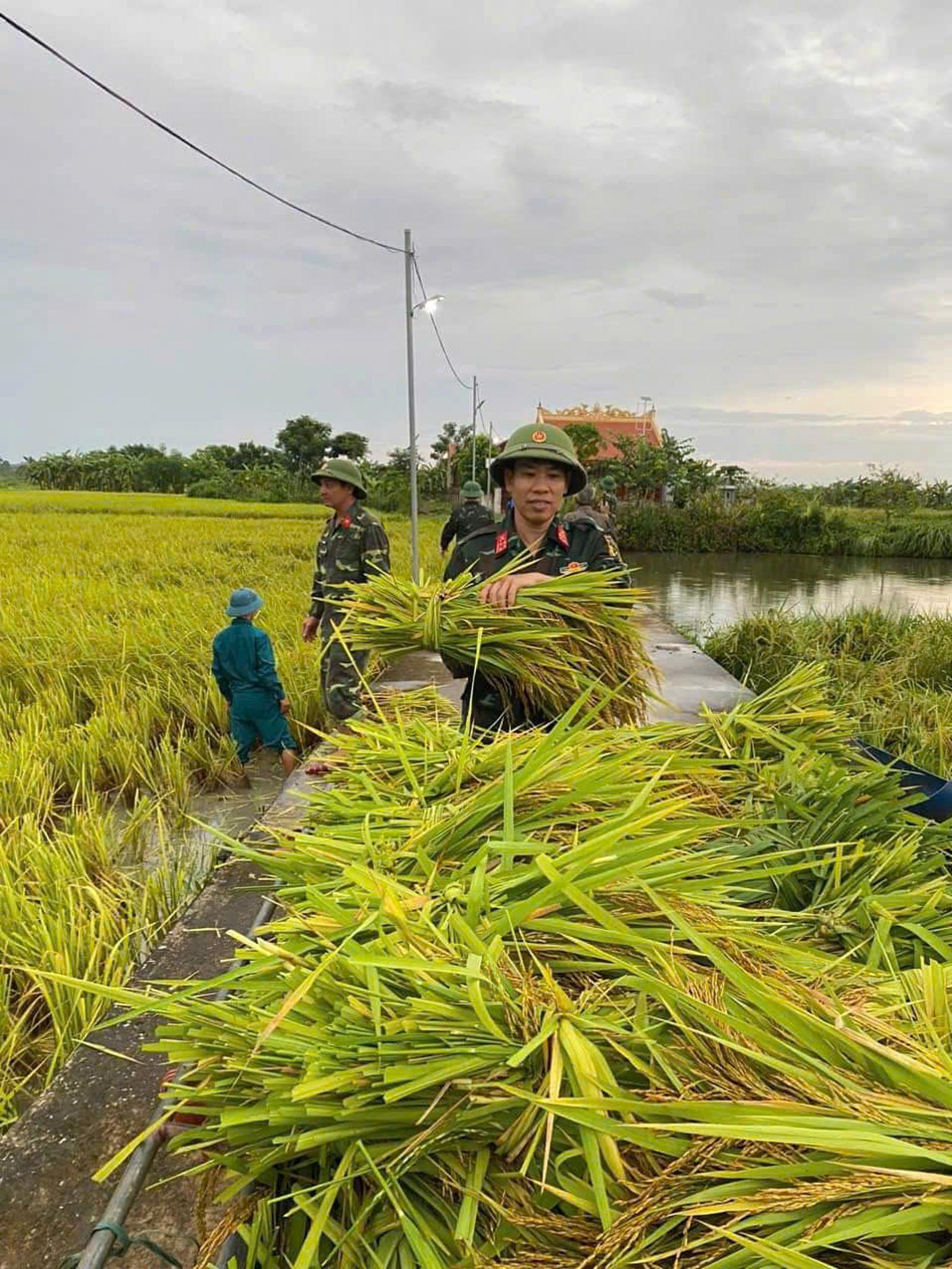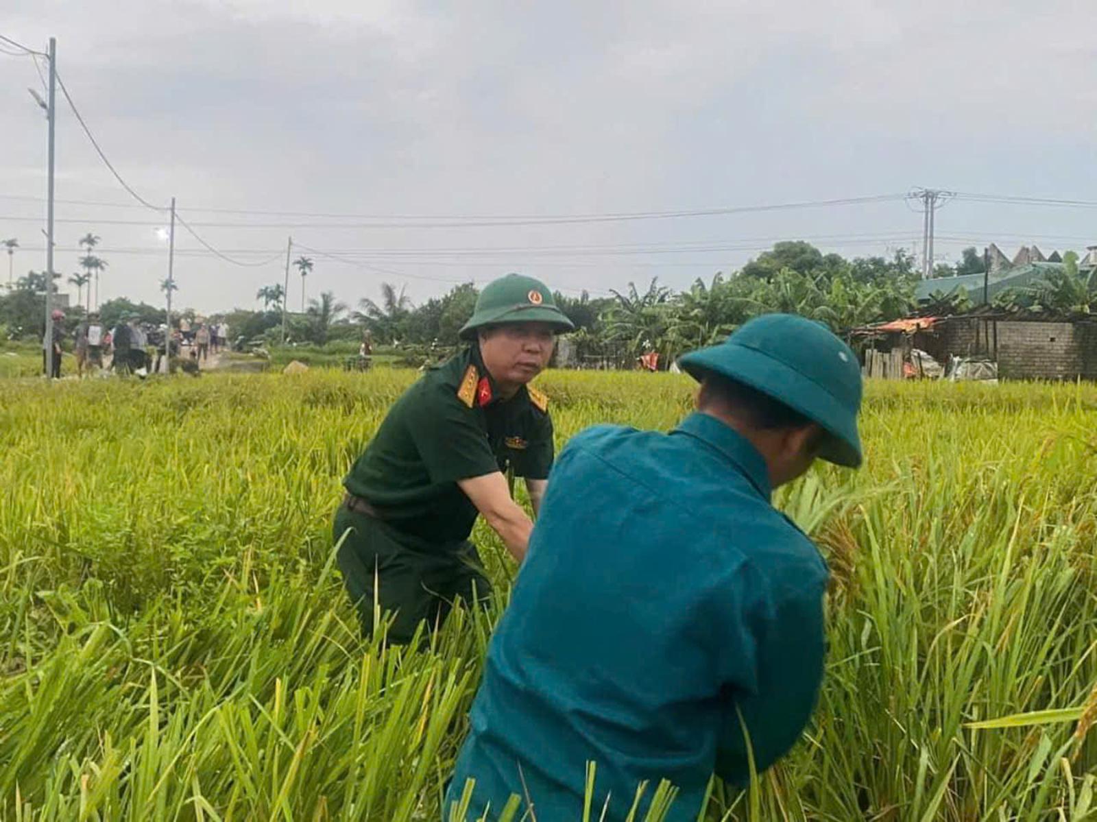 Một số hình ảnh lực lượng vũ trang tham gia gặt lúa giúp dân phòng chống bão Yagi tại huyện Hậu Lộc: