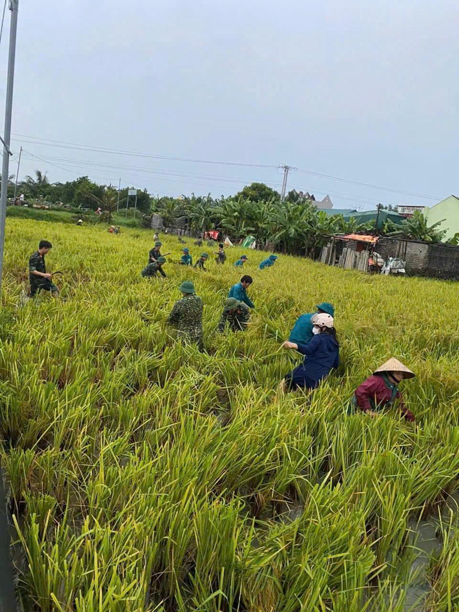 Bộ đội giúp dân gặp lúa chạy bão. Ảnh: Hương Trà