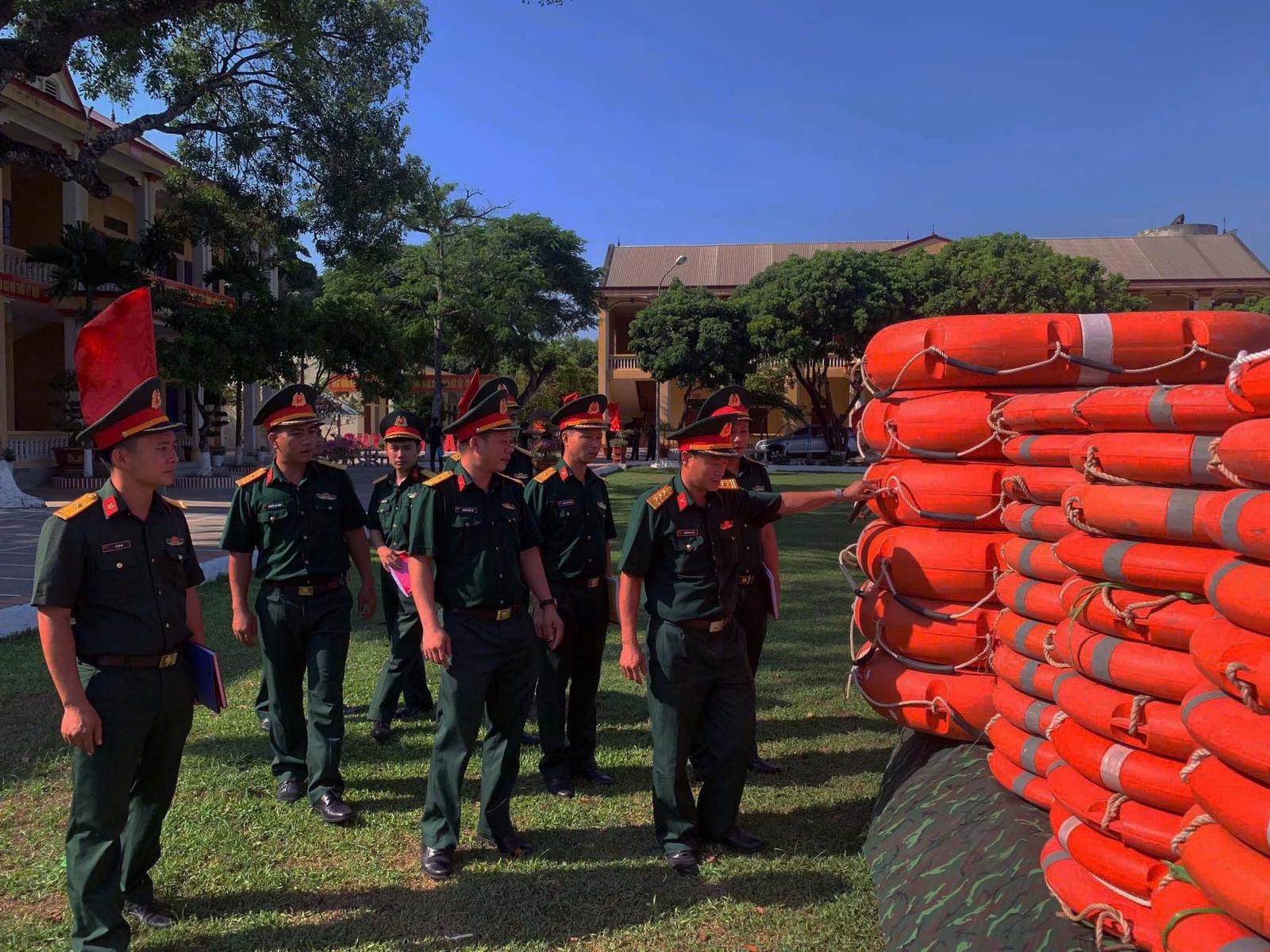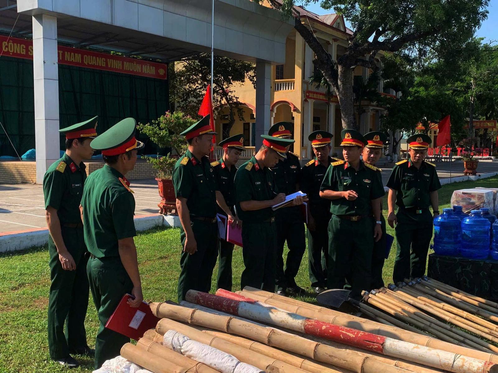 Trung đoang 762 thuộc Bộ Chỉ huy Quân sợ tỉnh Thanh Hoá, kiểm tra vật chất và phương tiện chống bão. Ảnh: Hương Trà