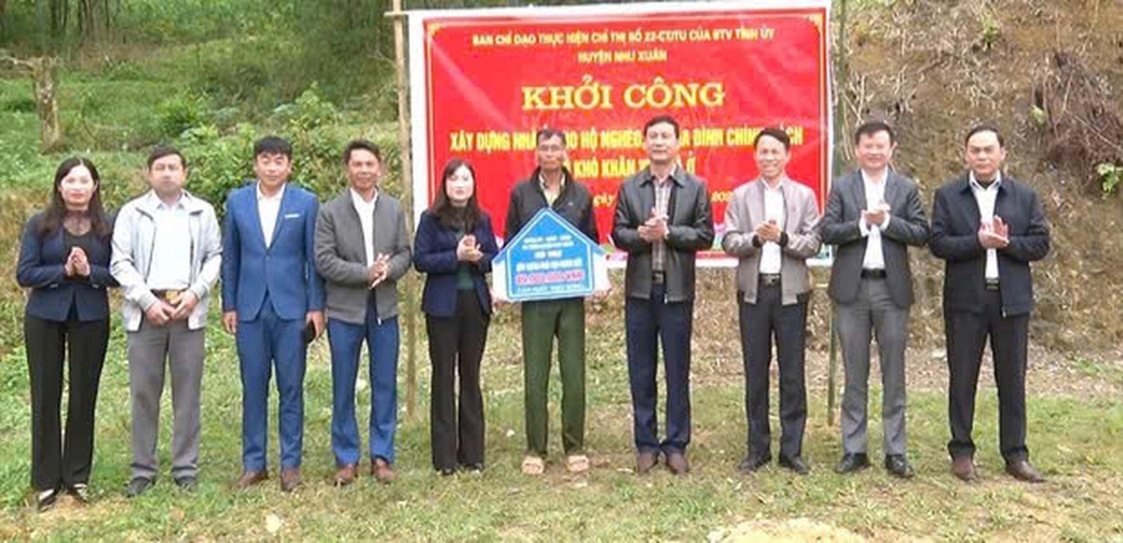 Huyện Như Xuân đã thành lập 11 đoàn công tác đến dự lễ khởi công xây dựng nhà ở cho 19 hộ gia đình theo Chỉ thị số 22 của Ban Thường vụ Tỉnh ủy về Cuộc vận động hỗ trợ xây dựng nhà ở cho hộ nghèo, hộ gia đình chính sách, hộ còn khó khăn về nhà ở tại các xã, thị trấn.