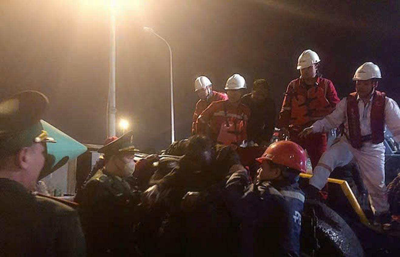 Khoảng 3 giờ 30 phút ngày 25/2, tàu PTSC 06 đã đưa được 2 thuyền viên bị nạn vào đến bờ.