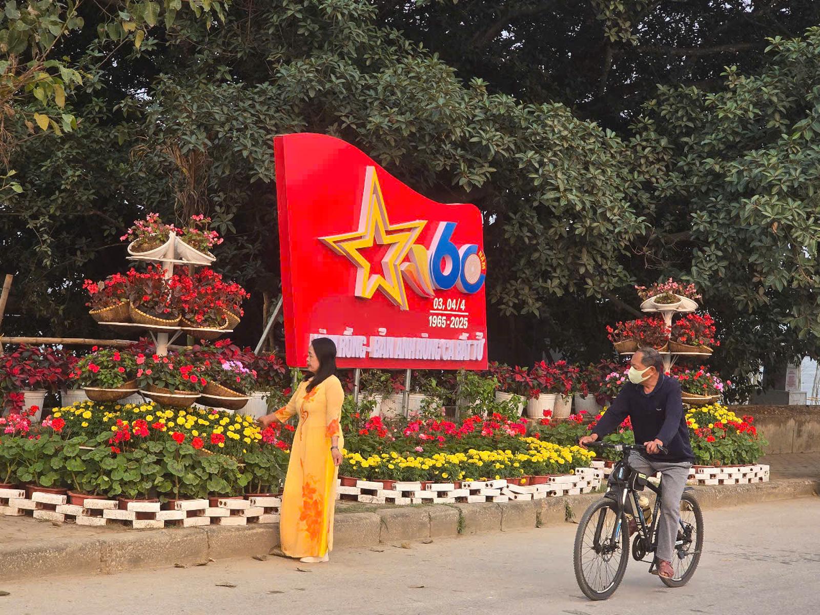 Người dân tìm đến các điểm trang trí về lễ kỷ niệm Hàm Rồng chiến thắng để chụp ảnh. Ảnh: P.V