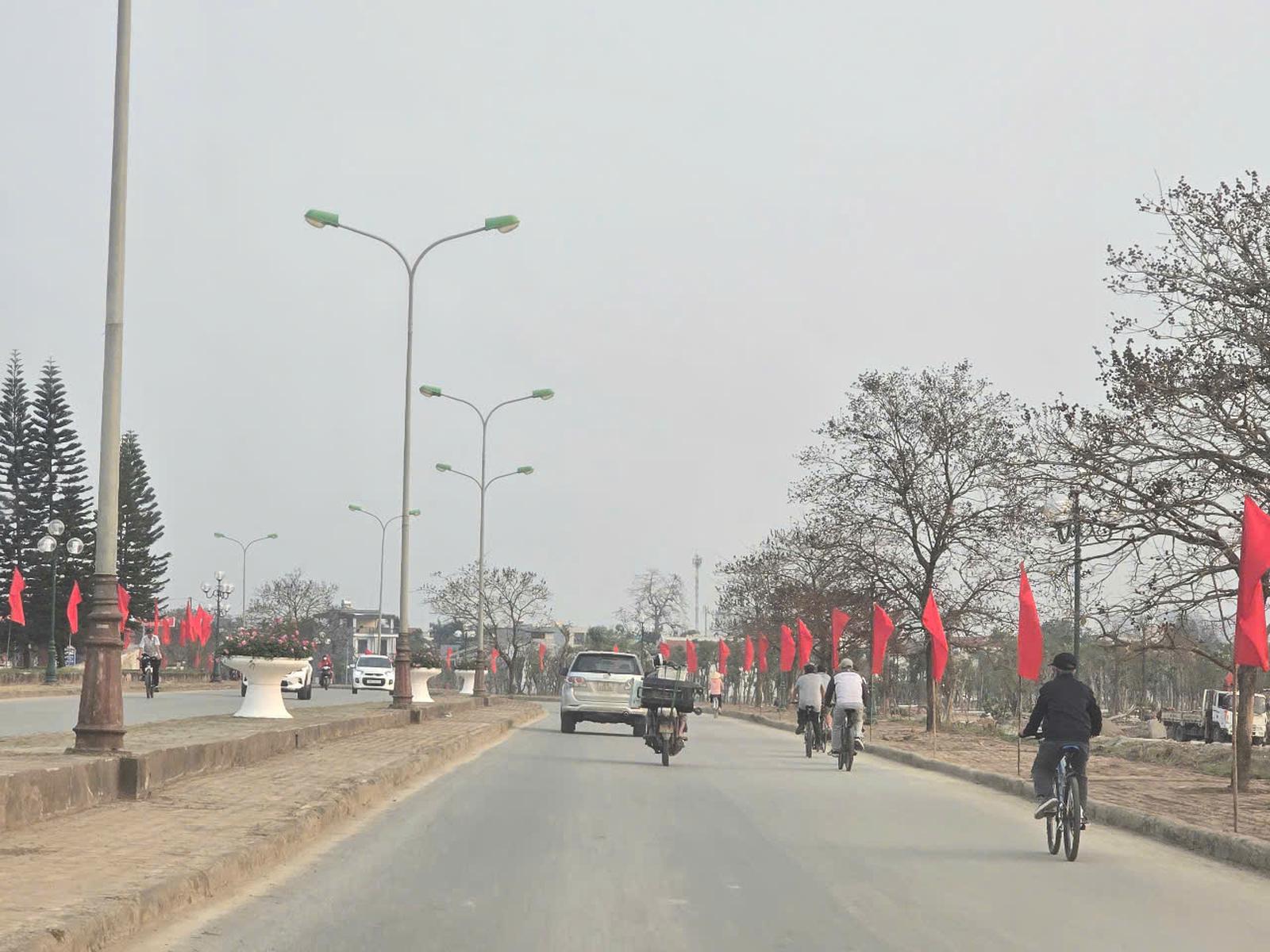 Cờ hoa rực rõ được cắm trên các tuyến đường ở phường Hàm Rồng, thành phố Thanh Hóa. Ảnh: P.V