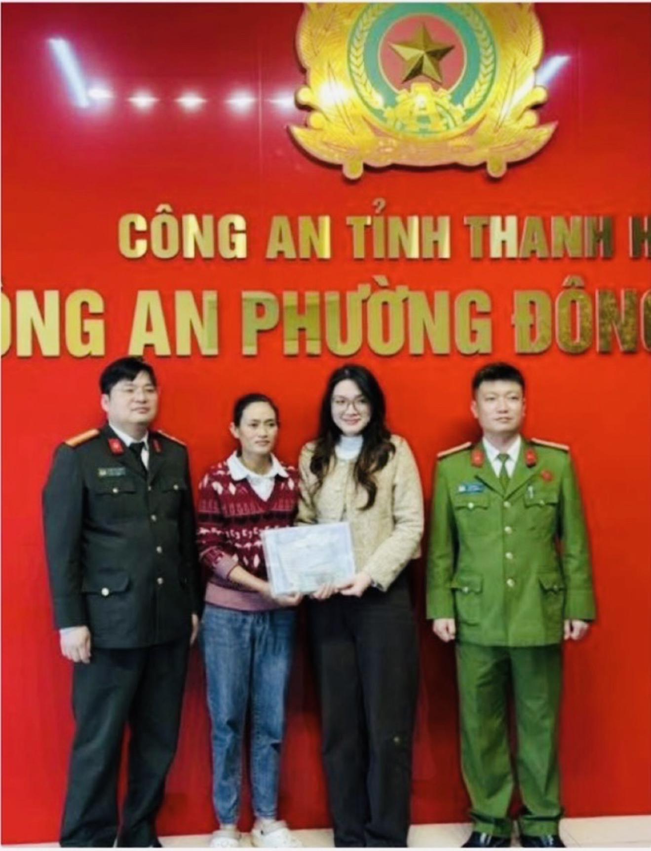 Công an phường Đông Quang tổ chức cho chị Nguyễn Thị Tuyết trao trả lại tài sản trị giá 1,4 tỷ đồng cho người đánh rơi. Ảnh: Công an Thanh Hoá
