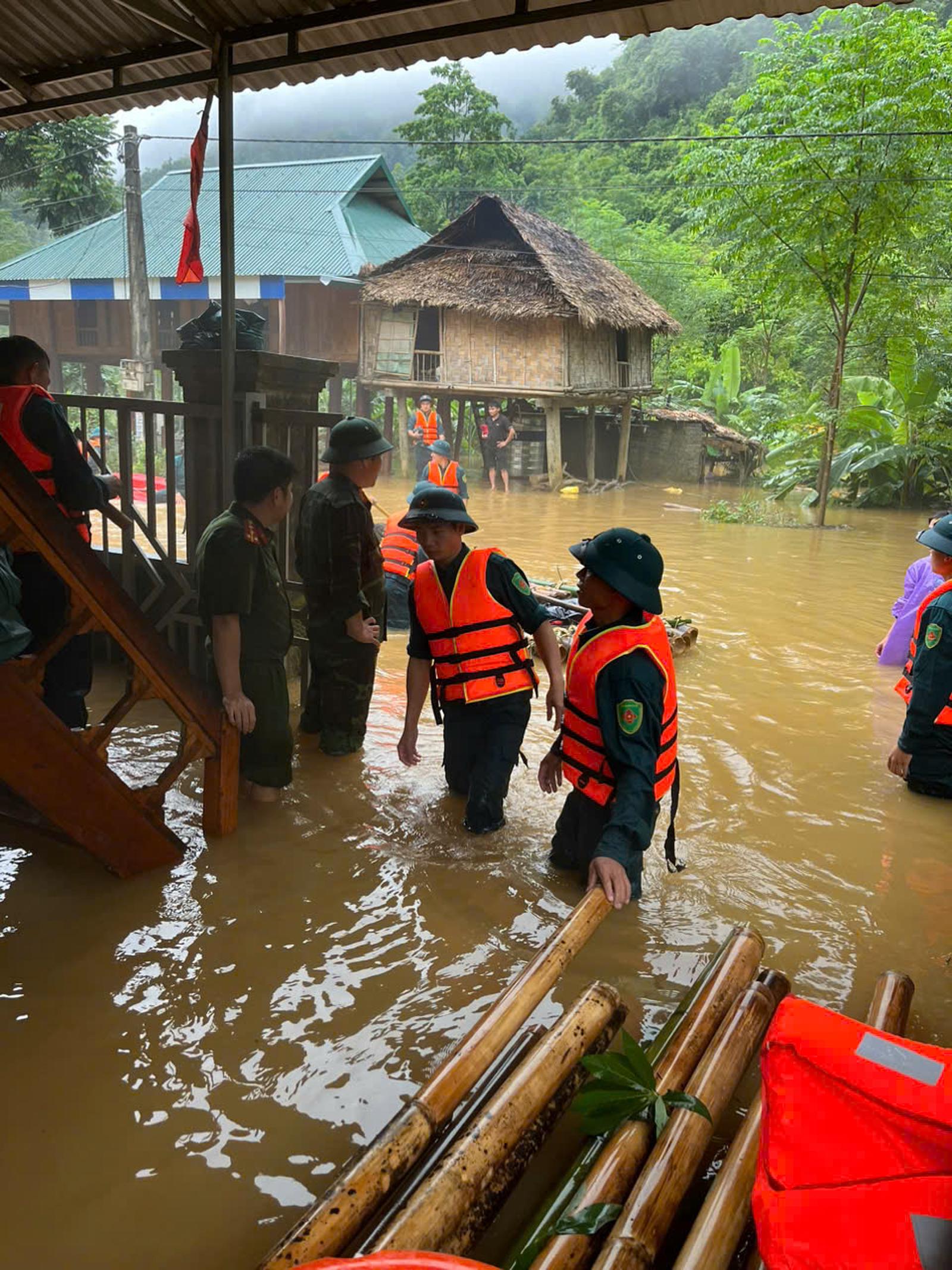 Lực lượng Công an Thanh Hóa di dời tài sản giúp dân trong mưa lũ. Ảnh: Văn Thiện