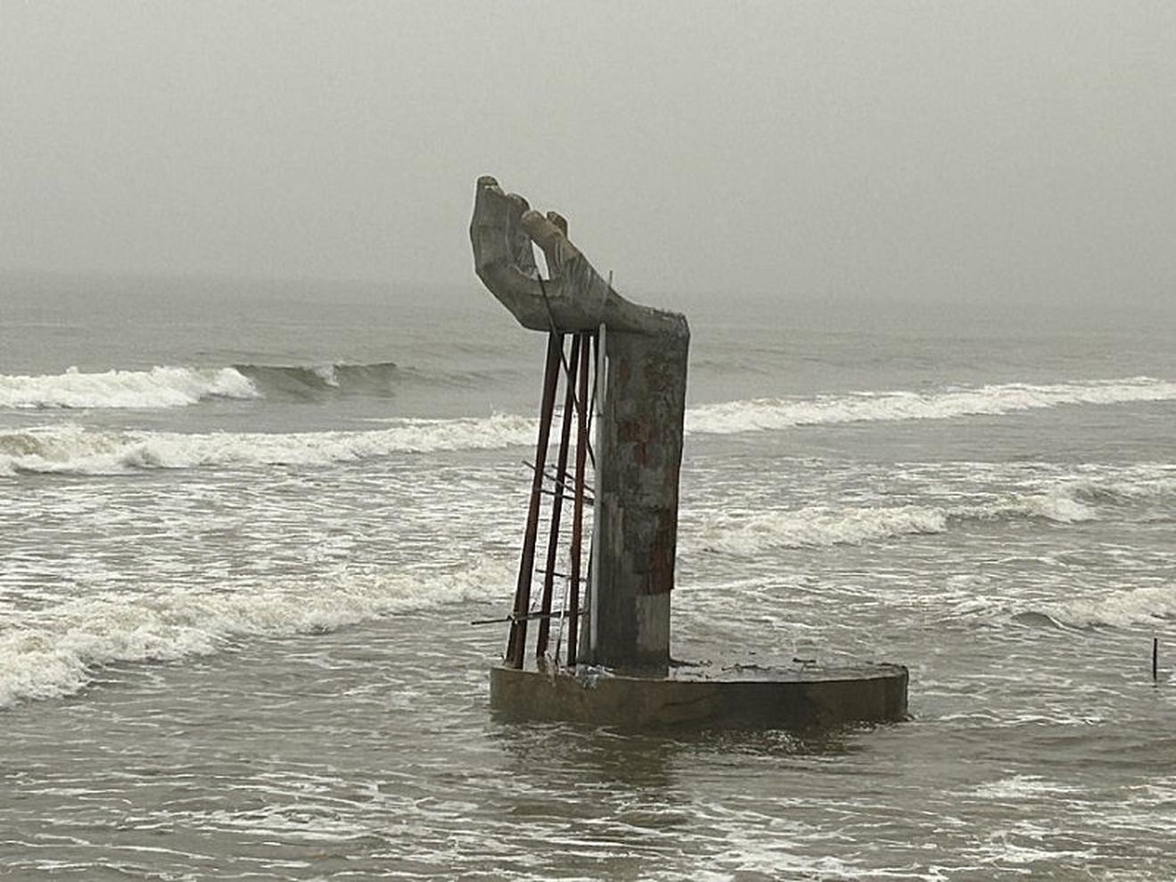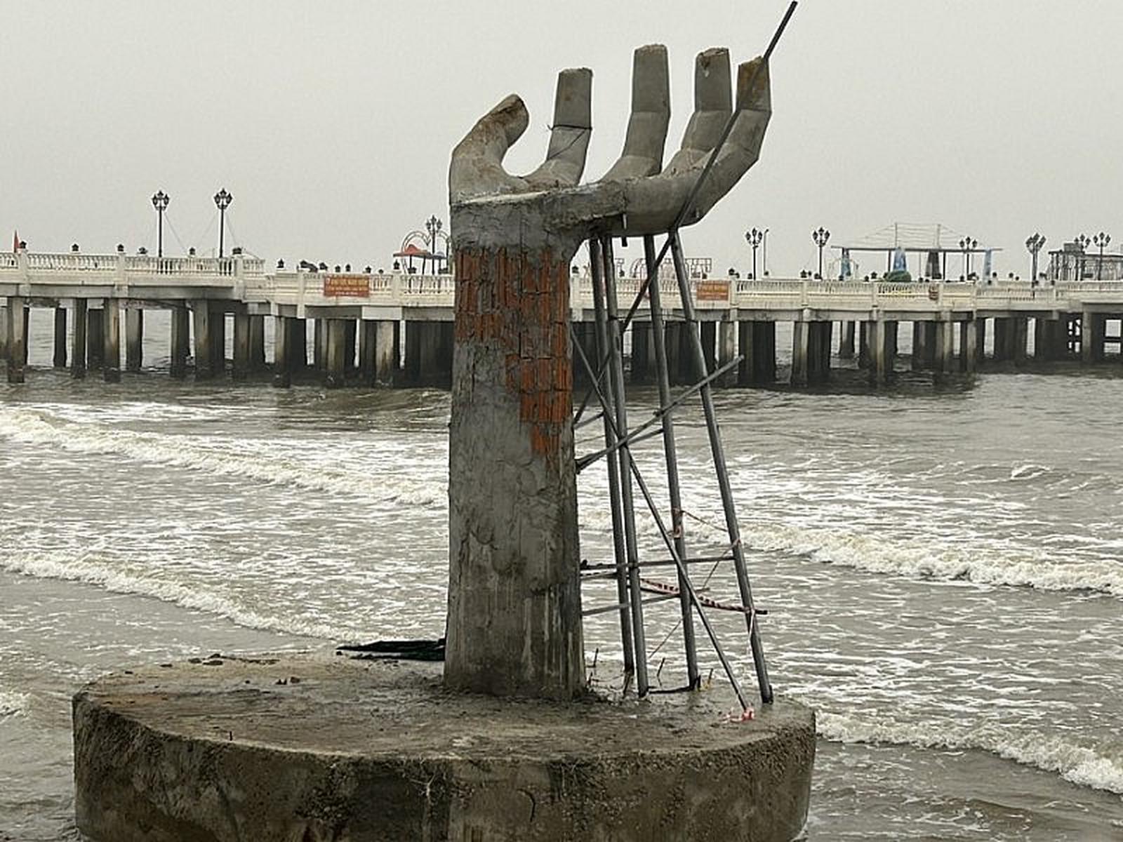 Thực tế ghi nhận cho thấy, sau các đợt bão lớn, có tới 4 trong số 5 “bàn tay” bị xô lệch khỏi vị trí ban đầu, phần móng và thân trụ bê tông chịu tác động mạnh của sóng biển. Nếu không kịp thời xử lý, nguy cơ đổ sập, gây mất an toàn cho người dân và du khách là rất lớn, nhất là trong mùa cao điểm du lịch biển.