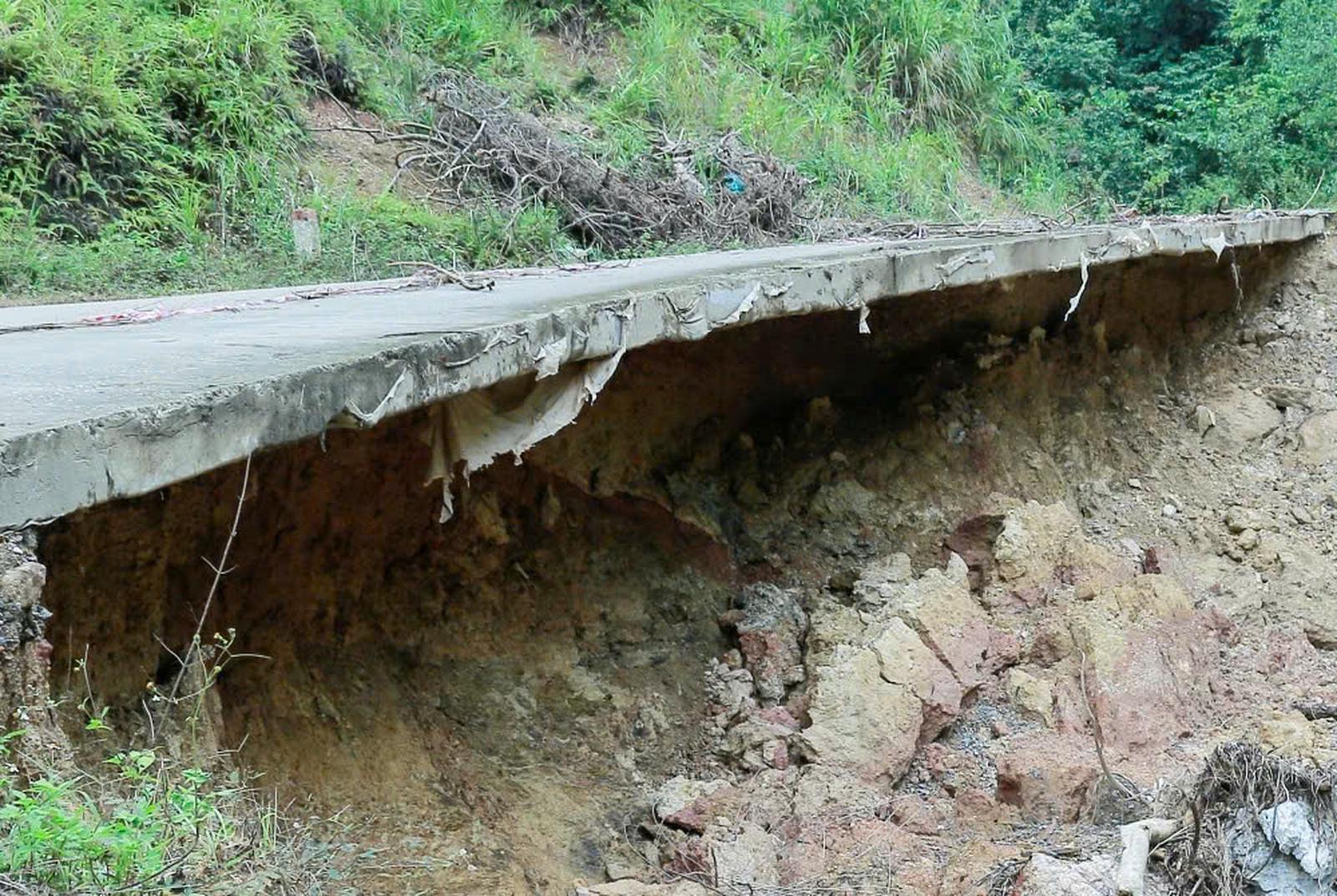 Tuyến đường 522C vào hang Con Mông - di sản quốc gia đặc biệt bị sạt lở nghiêm trọng, tiềm ẩn nguy cơ mất an toàn tại xã Thành Vinh, tỉnh Thanh Hoá. Ảnh: PV