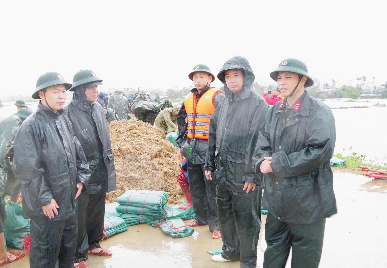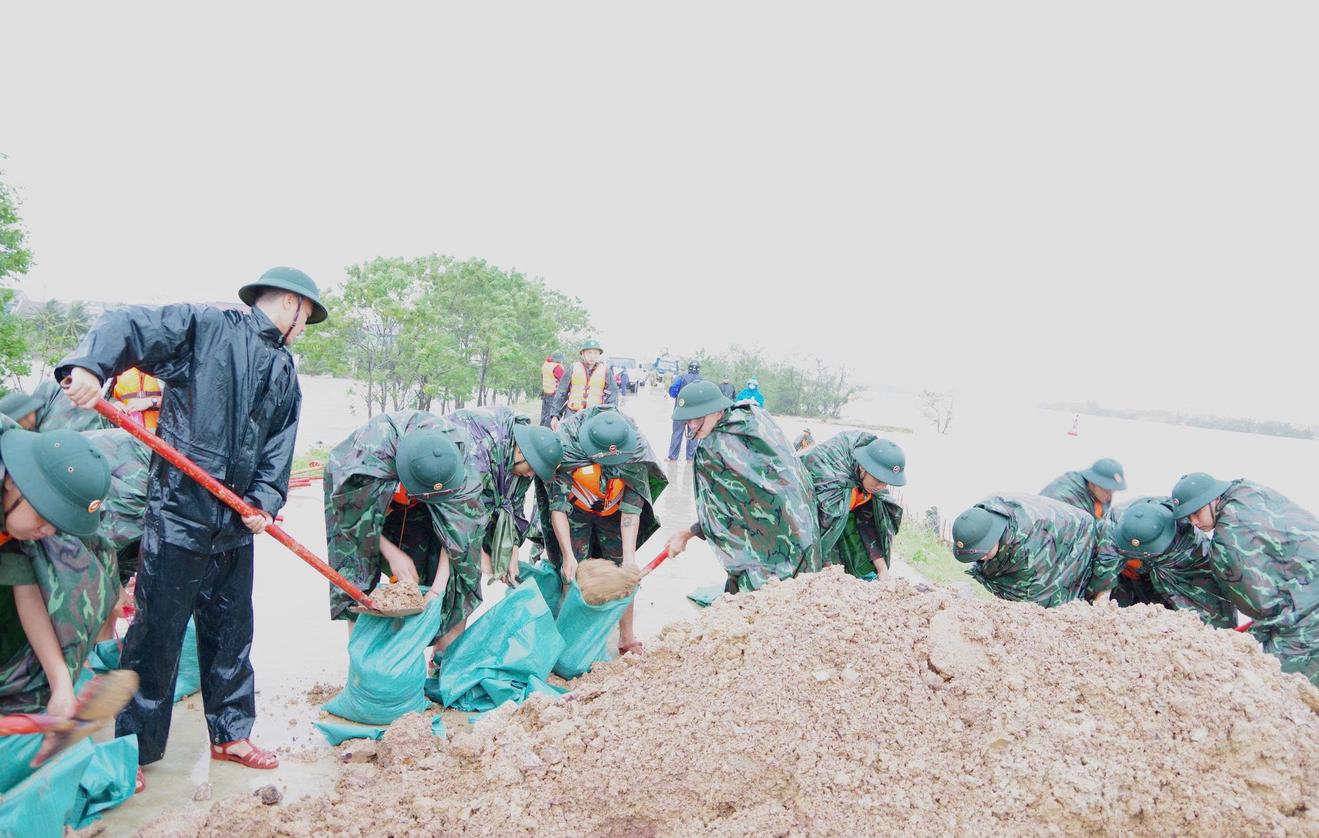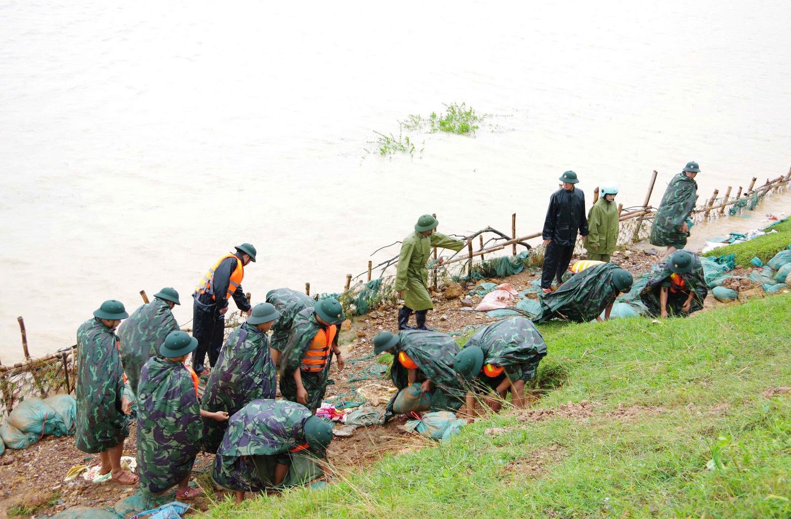 Trực tiếp có mặt tại hiện trường, Chính ủy Bộ CHQS tỉnh Thanh Hoá đã chỉ đạo các lực lượng triển khai đồng bộ, quyết liệt các giải pháp ứng cứu. Với phương châm “4 tại chỗ”, lực lượng vũ trang tỉnh cùng cấp ủy, chính quyền địa phương và Nhân dân đã khẩn trương đóng hàng nghìn cọc tre, gia cố bằng bao đất để chặn giữ, bảo đảm vững chắc thân đê, nhằm hạn chế thấp nhất thiệt hại do thiên tai, bão lũ gây ra, đảm bảo an toàn mái đê, thân đê, bảo vệ người và tài sản các hộ dân sống ven đê.