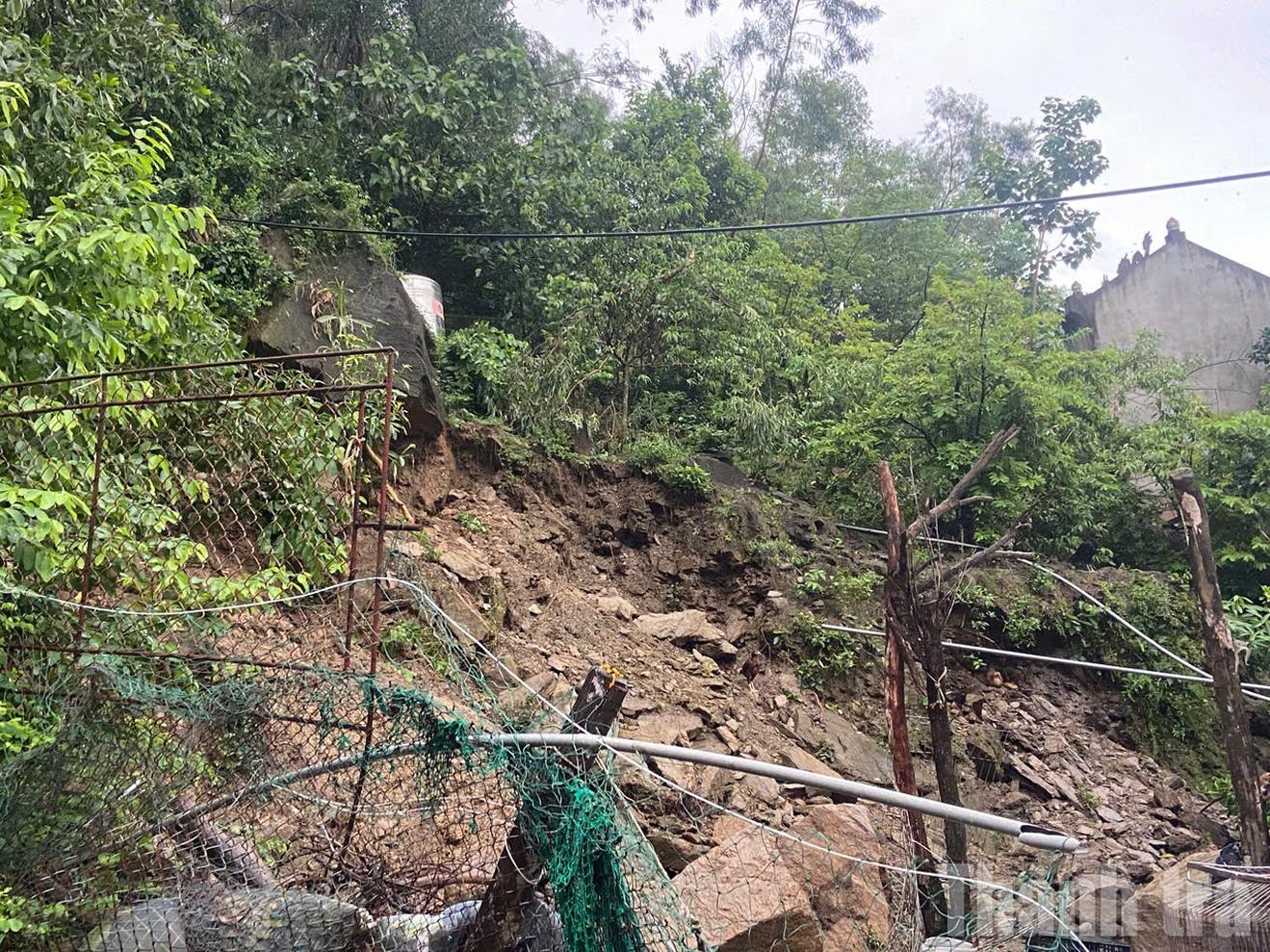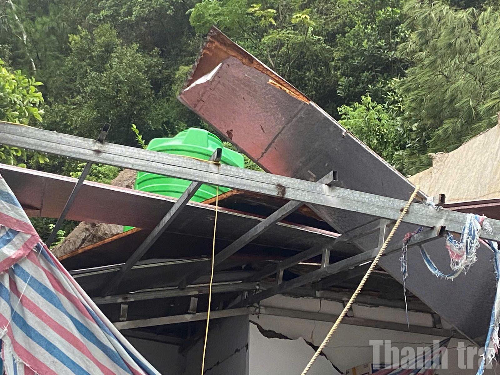 Theo ghi nhận, khoảng 40m³ đất đá từ sườn núi đã trượt xuống, làm đổ sập công trình phụ rộng hơn 60m² nhà ông Chiến; một khối đá lớn nặng khoảng 20 tấn hiện đang tì vào phần sau nhà ở, có thể đổ sập bất cứ lúc nào.