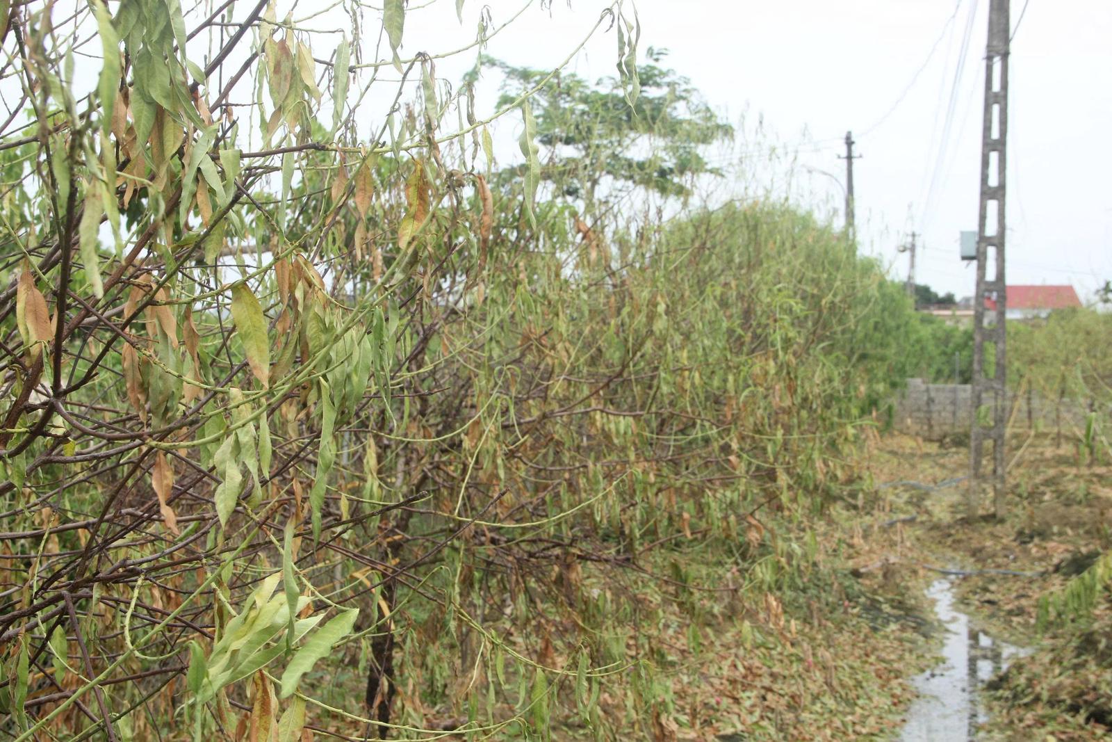 Nhiều cây đào từ 2-3 năm tuổi bị chết sau cơn bão số 3. Ảnh: Hương Trà