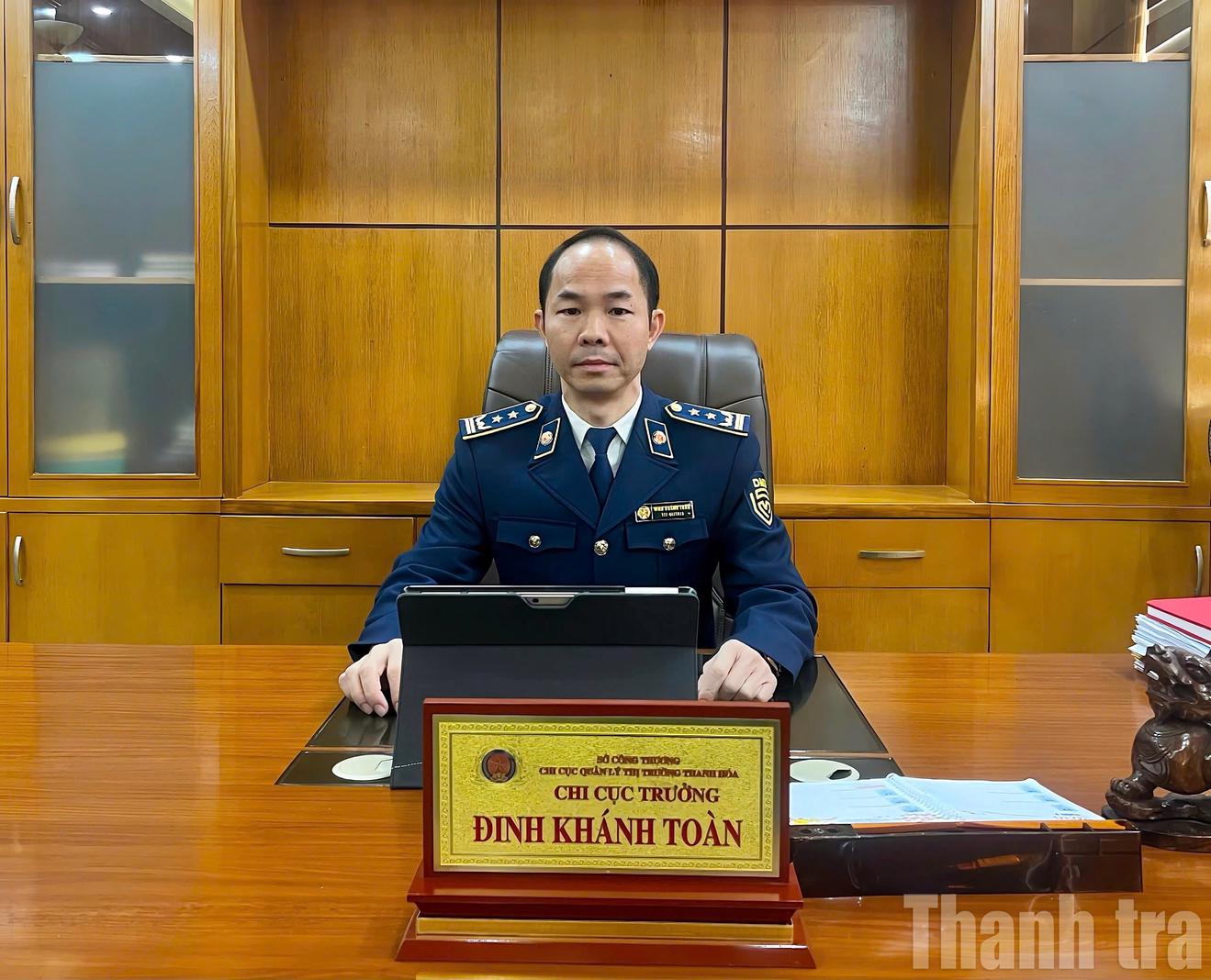 Ông Đinh Khánh Toàn, Chi cục trưởng Chi cục Quản lý thị trường tỉnh Thanh Hóa trả lời phỏng vấn Báo Thanh tra. Ảnh: Văn Thanh