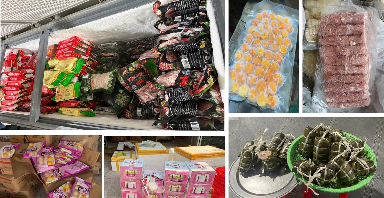 Các mặt hàng chủ yếu là nguyên liệu làm bánh sinh nhật xuất xứ ở Trung Quốc như bột làm bánh, kem béo, sốt kem trứng, ruốc lợn, khoai môn, khoai tây, nem chua rán, mực vòng, bò mỹ, xúc xích… Toàn bộ số hàng hoá đều không có hoá đơn, chứng từ chứng minh nguồn gốc xuất xứ, không tem nhãn, không hạn hoặc đã hết hạn sử dụng; chủ cơ sở khai nhận thu mua trôi nổi trên thị trường để kinh doanh.