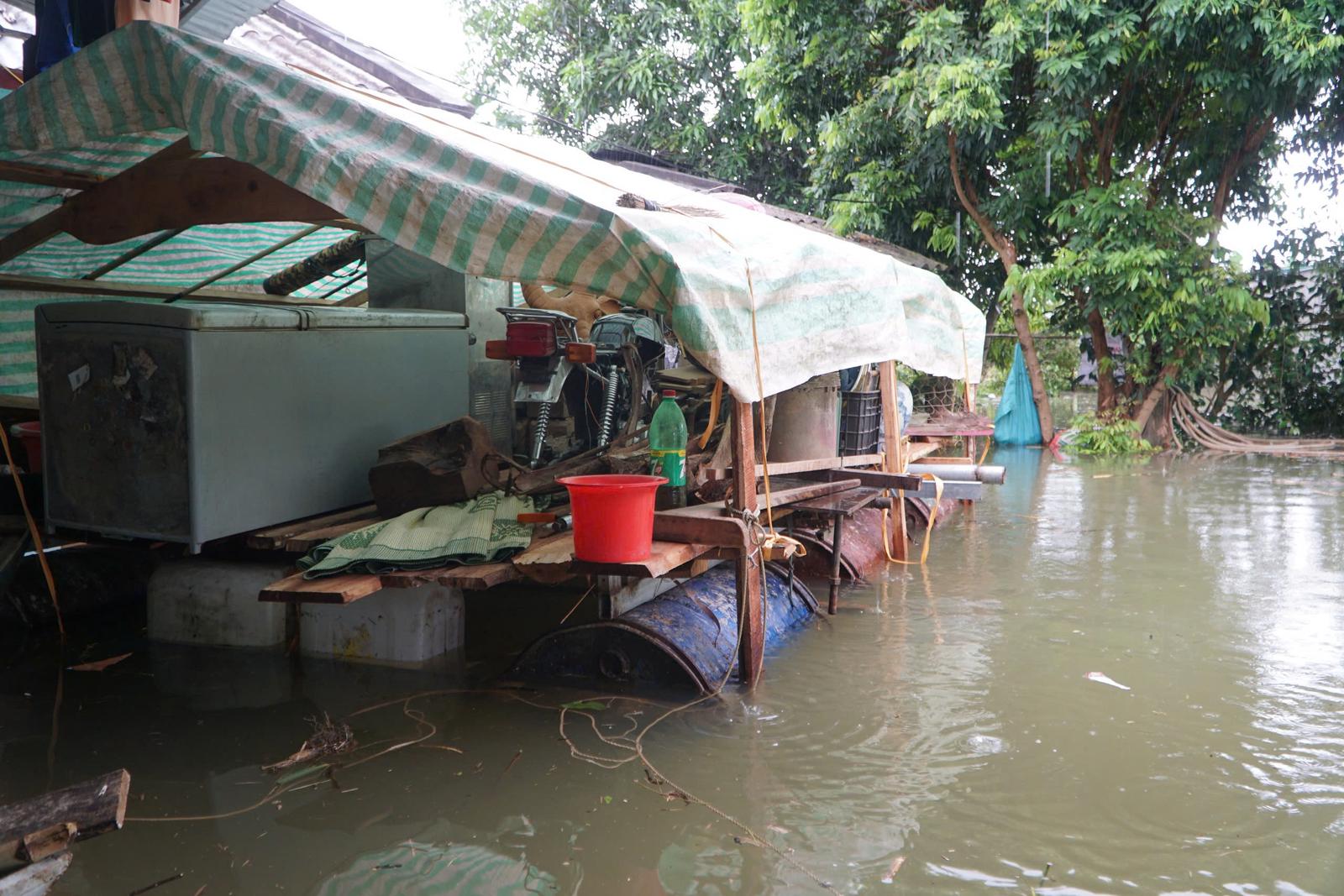 Nhà của các hộ dân bị ngập lụt, do lũ sông Bưởi dâng cao. Ảnh: Hương Trà