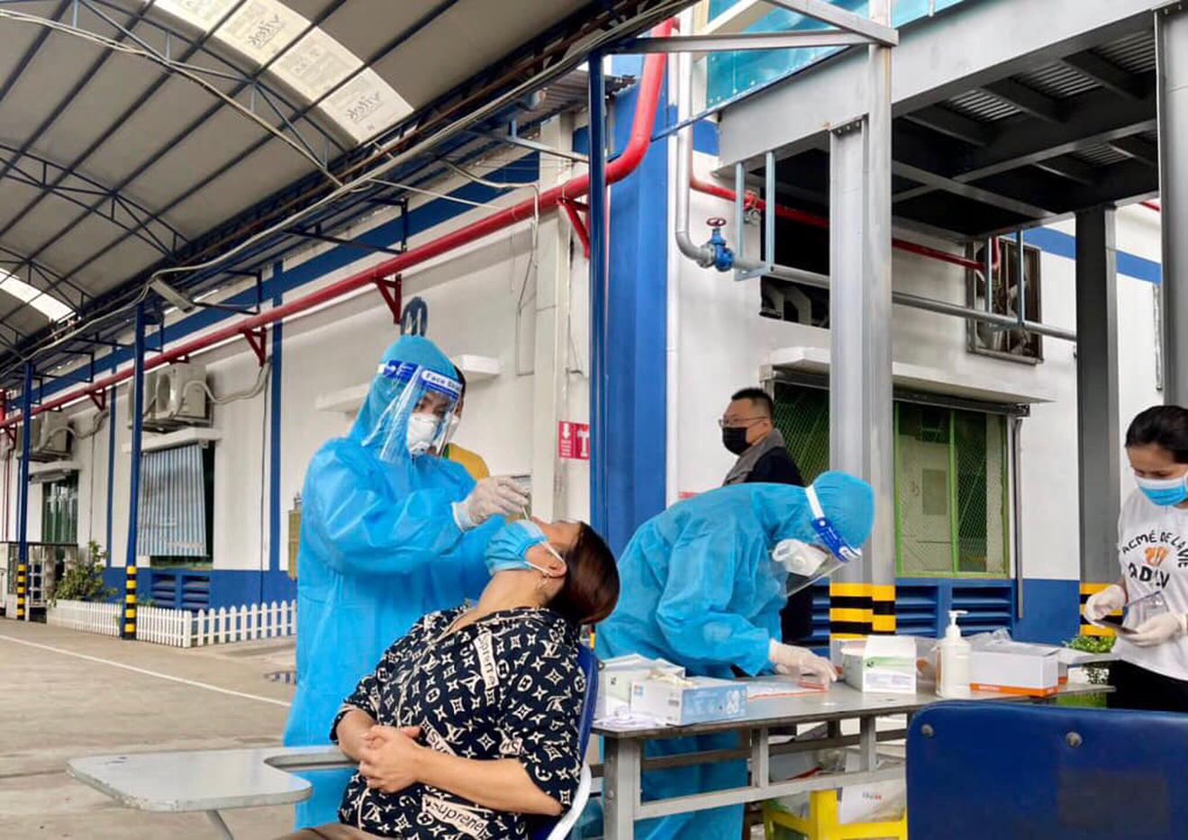 Lấy mẫu xét nghiệm COVID ở Thanh Hóa. Ảnh: VT