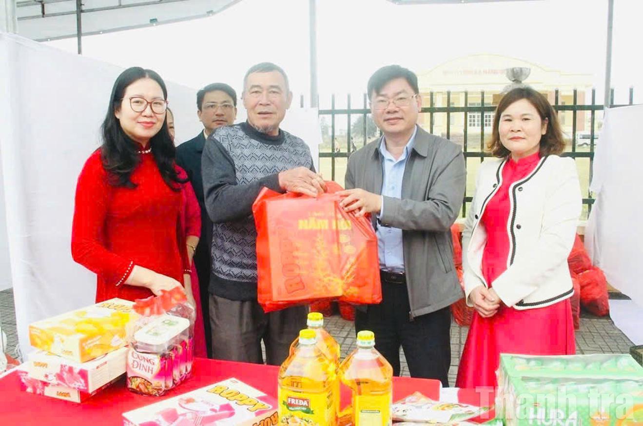 Chủ tịch UBND phường Quảng Phú trao quà cho người dân tại chương trình "Tết nhân ái". Ảnh: Hương Trà