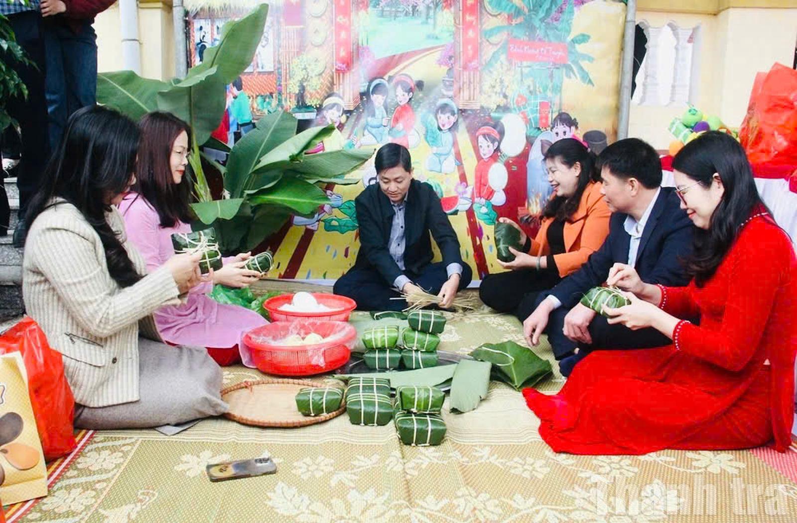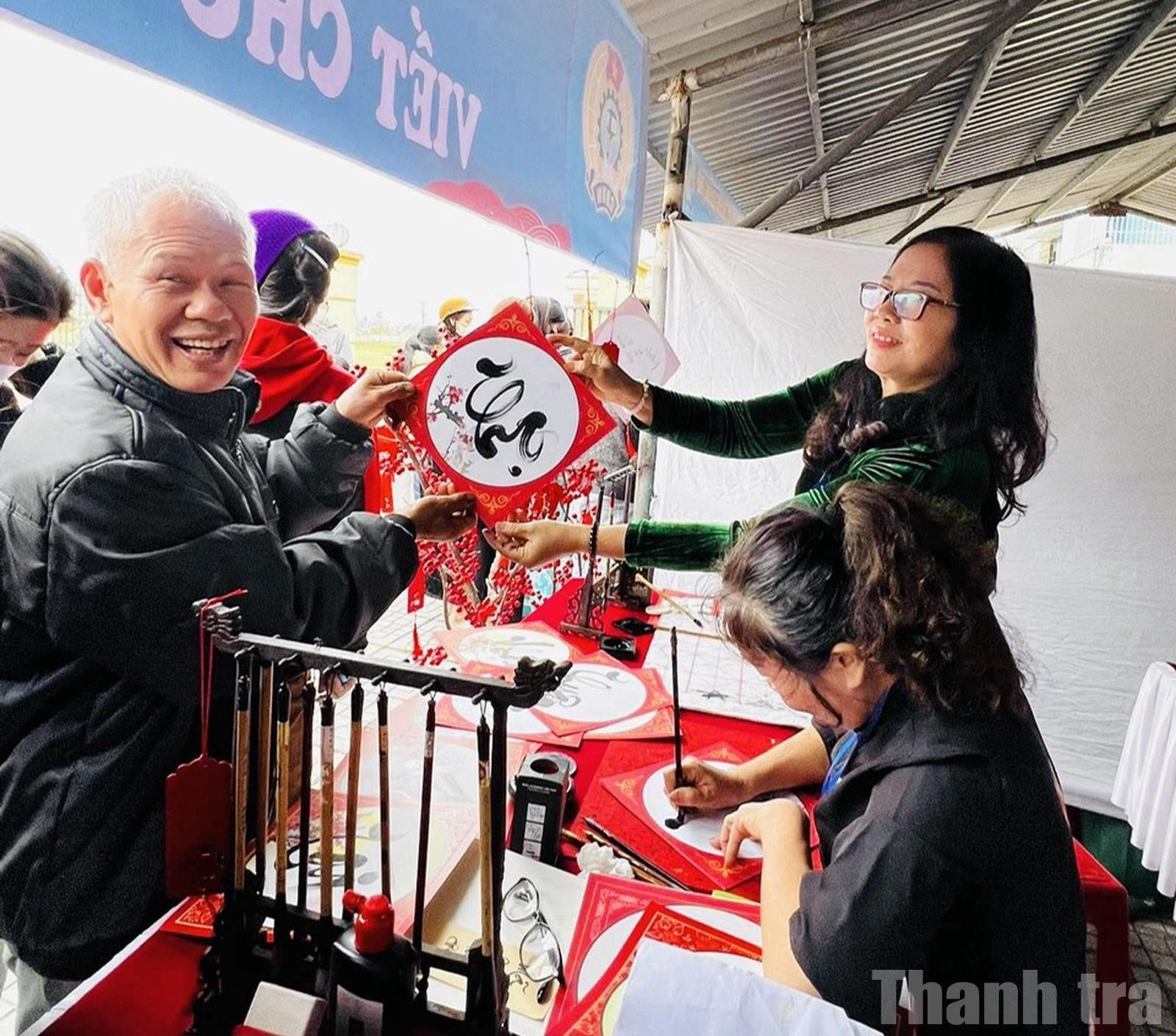 Các gian hàng mang tên “Ai thừa thì cho, ai thiếu thì nhận”, “Viết chữ thư pháp, câu đối Tết”, “Gói bánh chưng”, “Cắt tóc miễn phí”, “Chụp ảnh Tết”, “Áo dài - chia sẻ yêu thương”.