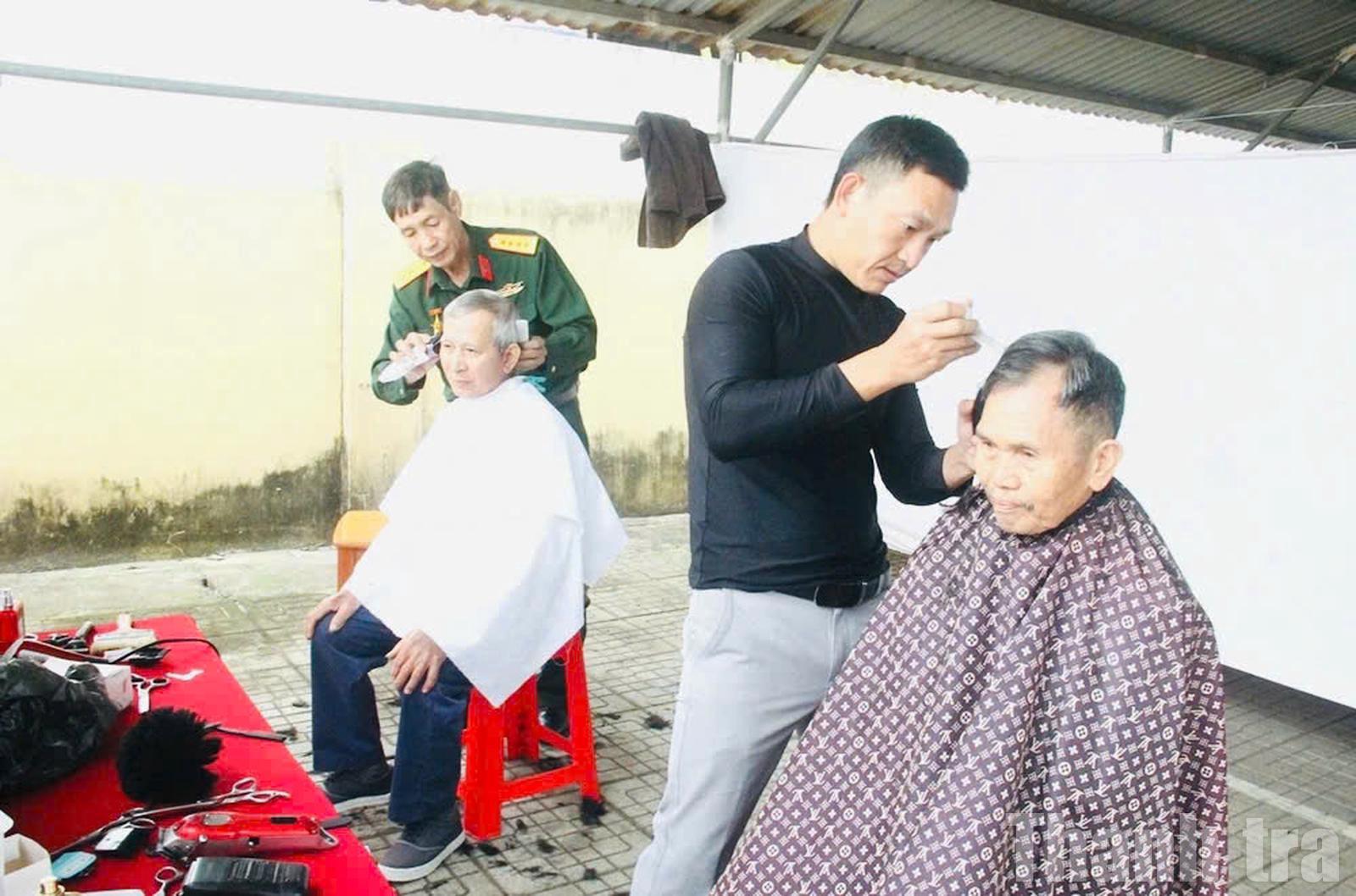 Cắt tóc miễn phí cho người dân tại chương trình "Tết nhân ái". Ảnh: Hương Trà