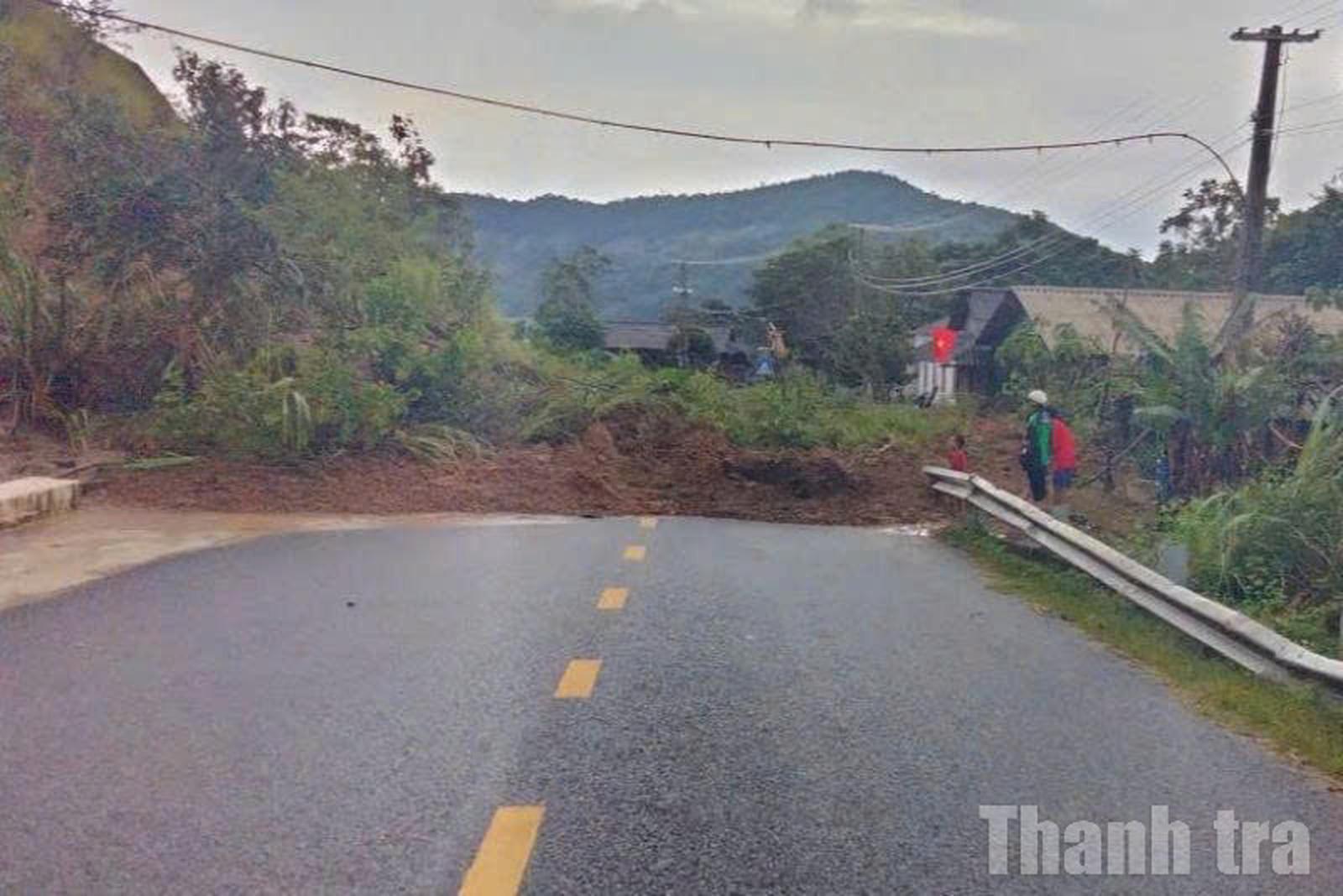 Cũng trong sáng 7/10, do ảnh hưởng hoàn lưu bão số 11, trên địa bàn xã Trung Hạ, tỉnh Thanh Hoá xuất hiện mưa to kéo dài, gây ra tình trạng sạt lở taluy dương nghiêm trọng tại tuyến quốc lộ 217, đoạn Km22–Km23 quan bản Tong gây chia cắt giao thông.