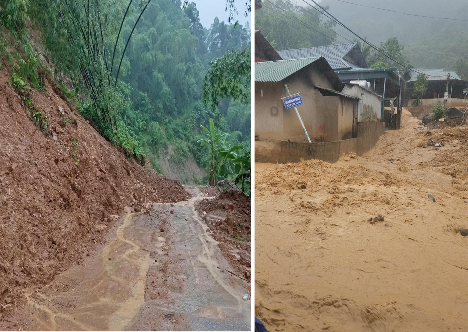 Sạt lở và ngập lụt tại xã Hoá Quỳ. Ảnh: Công an Thanh Hoá