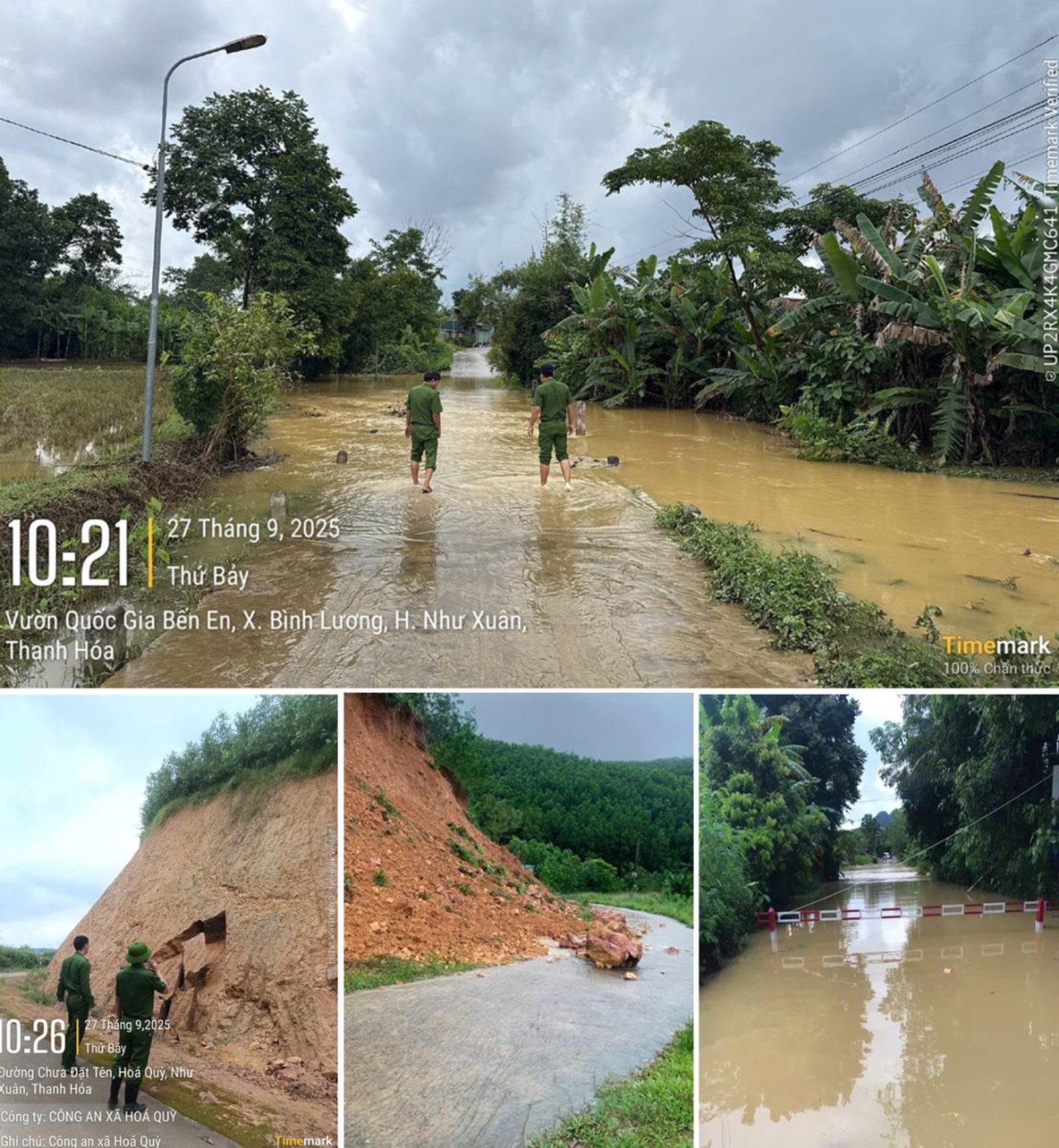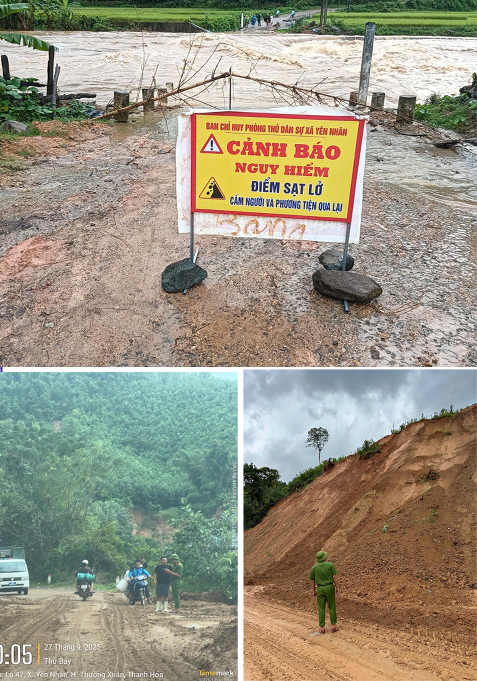 Nhiều tuyến đường bị ngập lụt và sạt lở. Ảnh: Công an Thanh Hoá