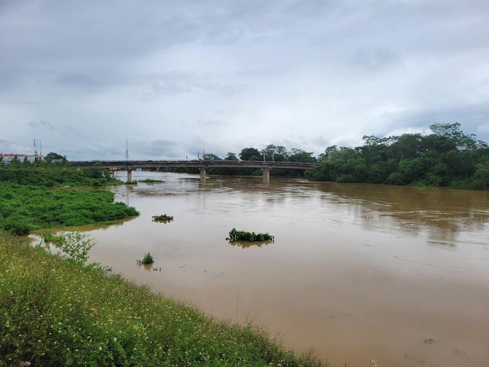 Nước lũ đang dâng cao trên sông Bưởi. Ảnh: Hương Trà