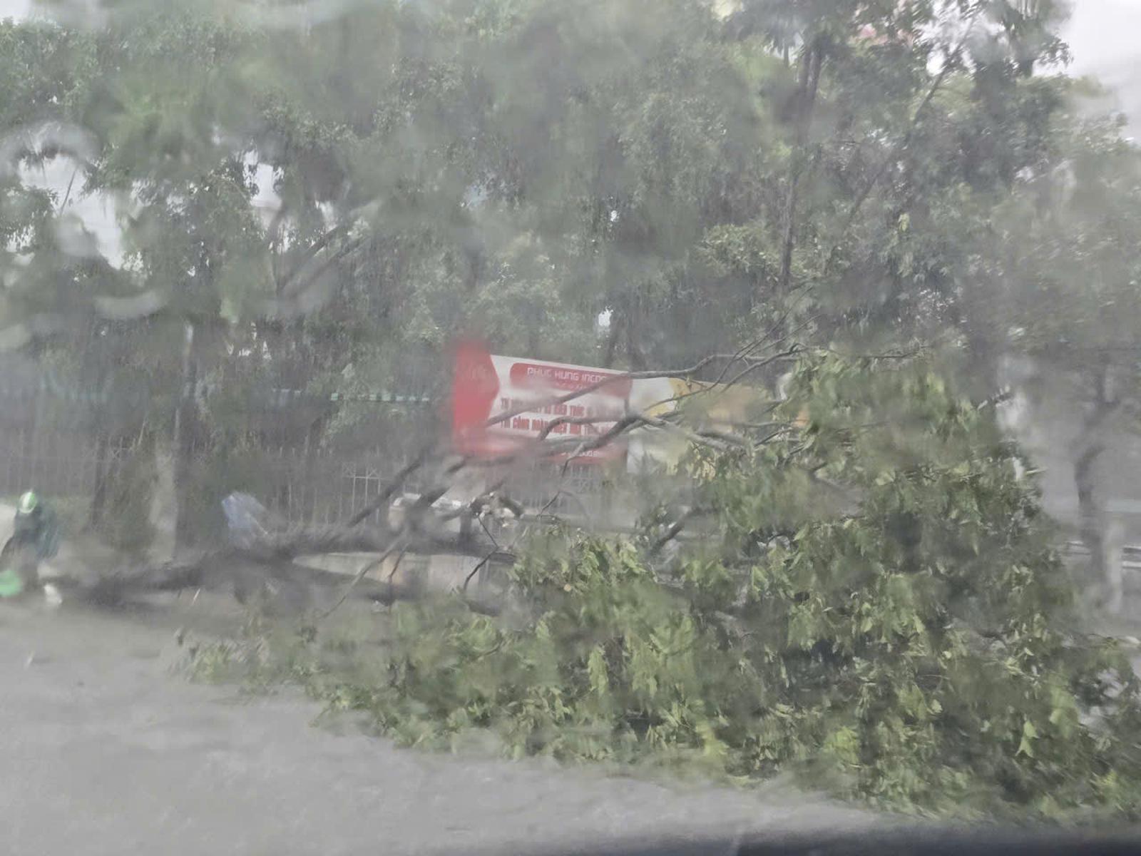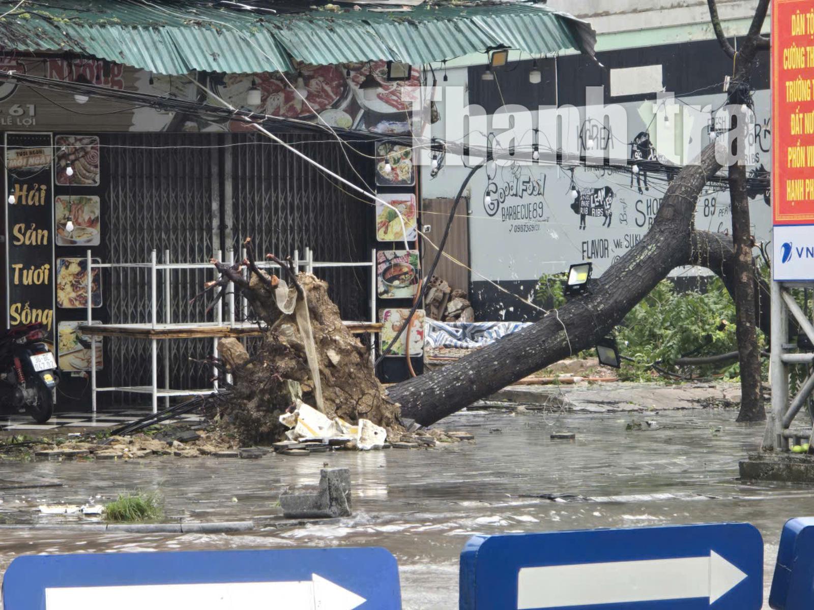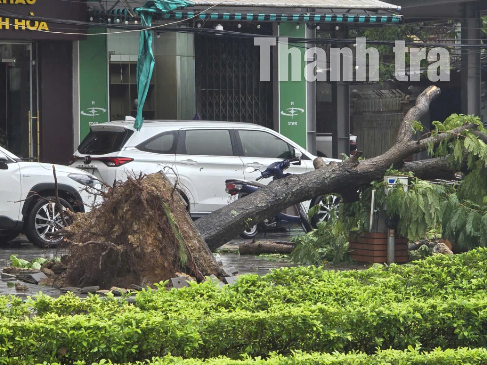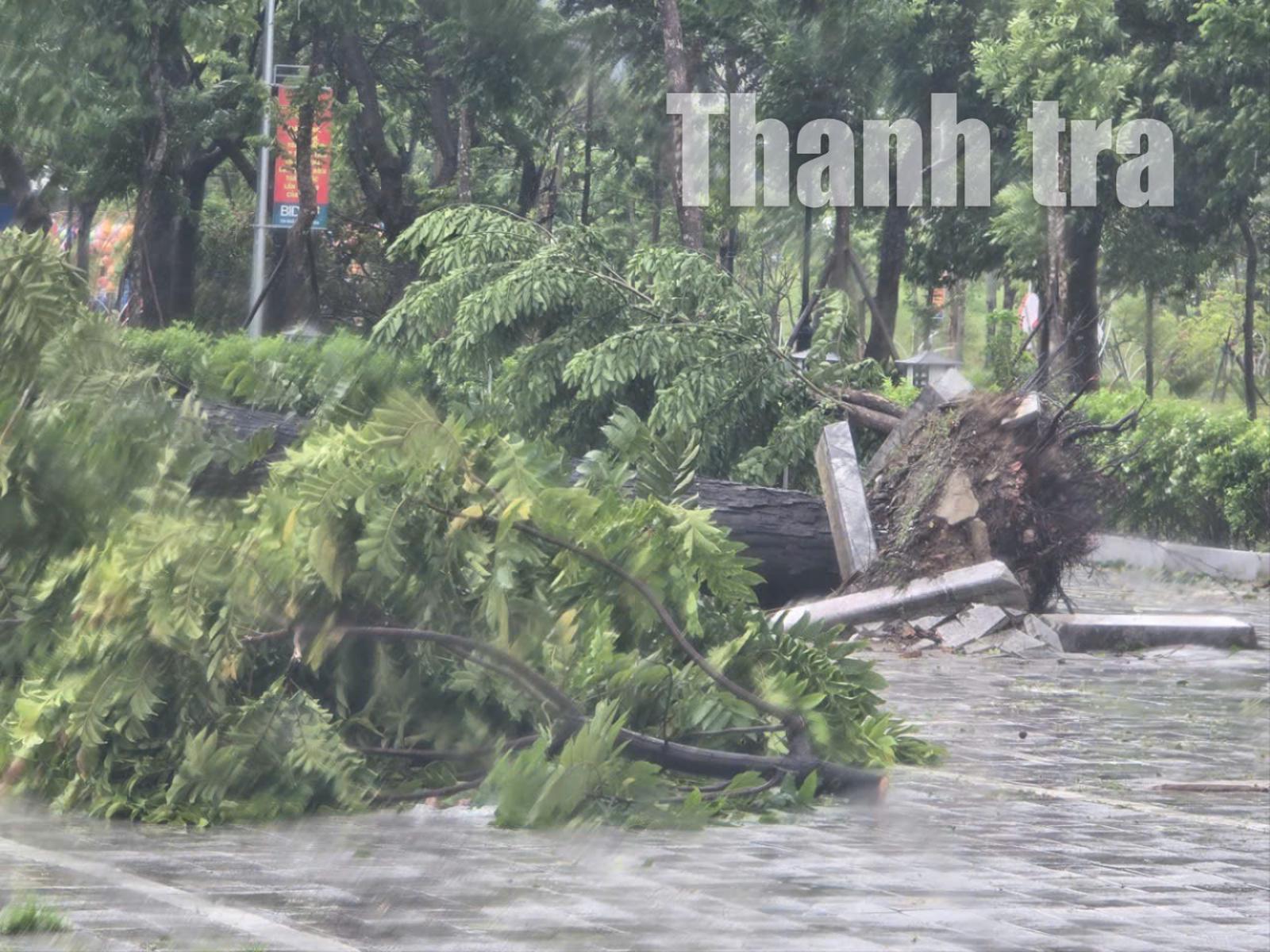 Hình ảnh nhiều cây cối bật gốc ở các phường thuộc tỉnh Thanh Hóa do bão số 5 đổ bộ. Ảnh: Văn Thanh