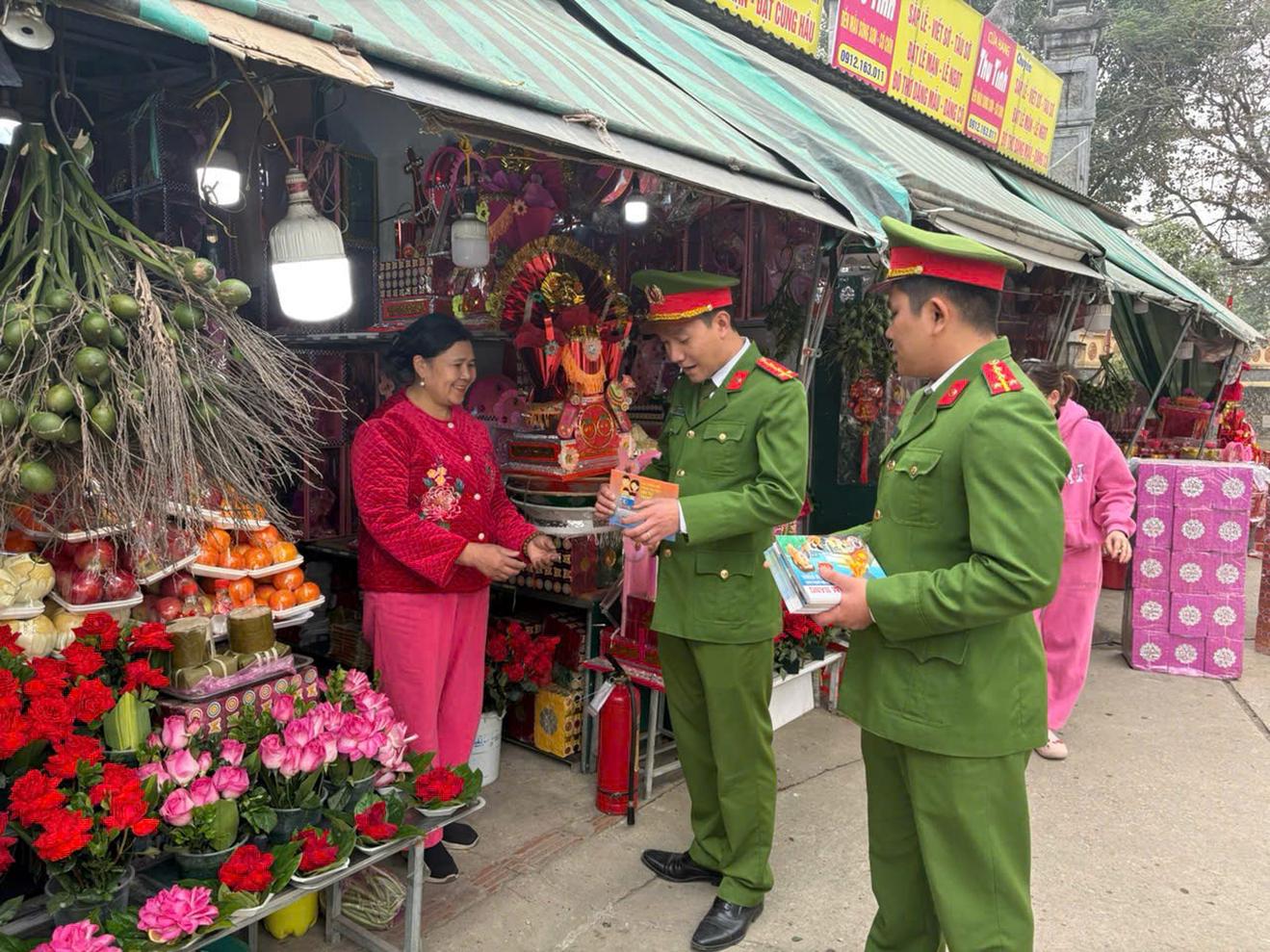 Lực lượng Công an tăng cường kiểm soát tại các nơi diễn ra lễ hội giúp môi trường du lịch trở nên an toàn, văn minh và thân thiện. Ảnh: Công an Thanh Hoá