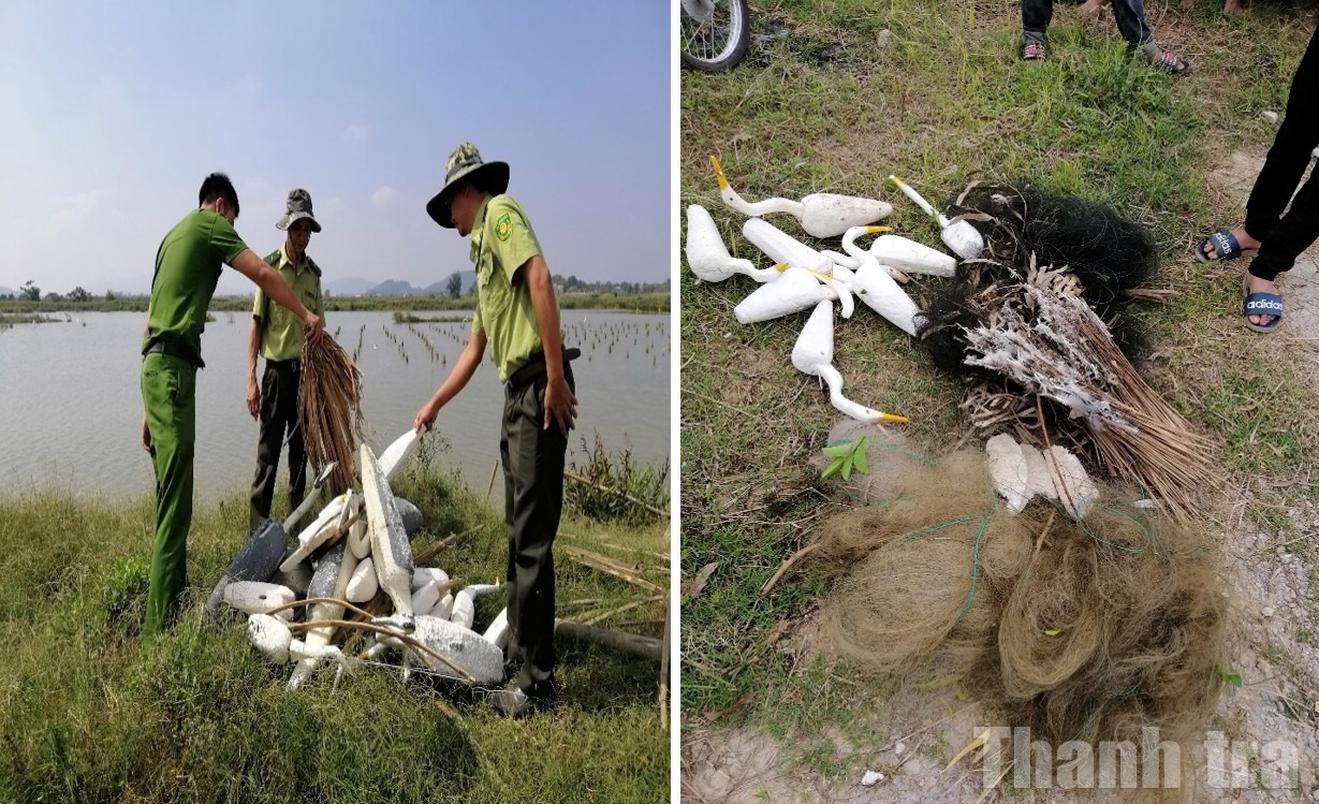 Hàng chục bộ dụng cụ bẫy bắt, lưới, loa điện, bẫy dính đã bị tịch thu; nhiều đối tượng bị lập biên bản, xử phạt hành chính theo Nghị định 35/2019/NĐ-CP của Chính phủ.